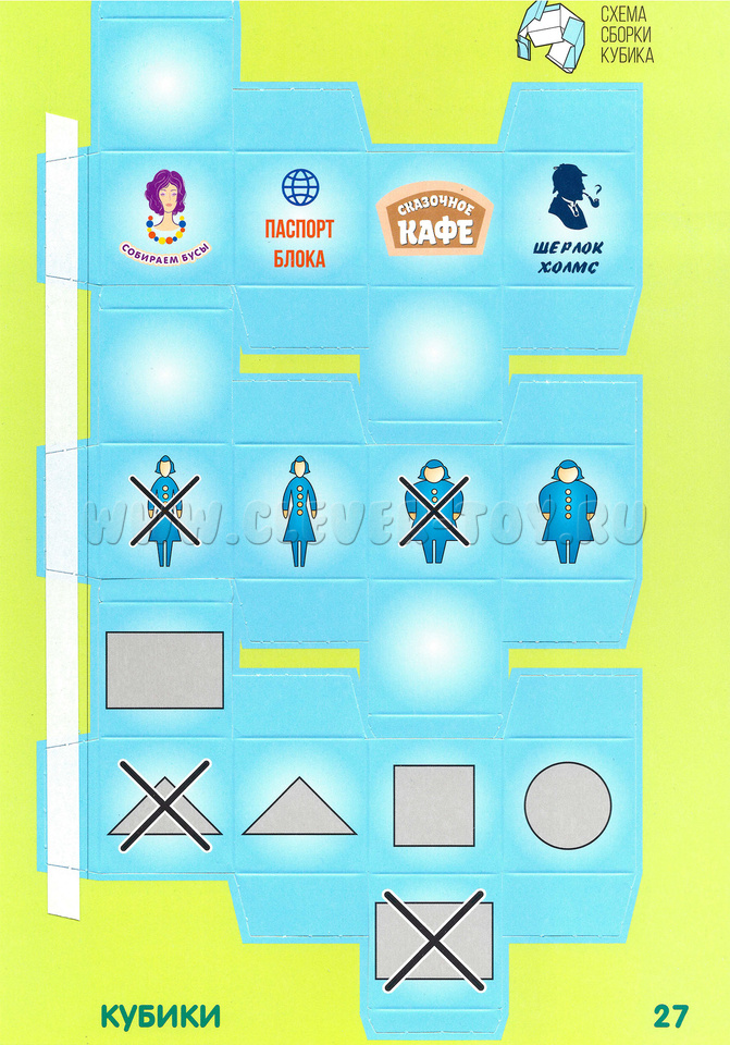 - Для детей от 3 до 5 лет (Кубик размера и цвета, Кубик формы и числа, Кубик героев сказок);