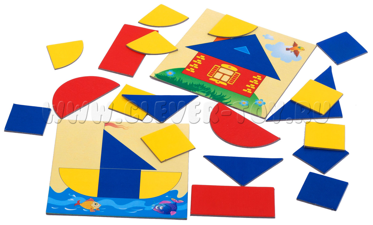 Наиболее эффективный материал для решения этих задач - геометрические фигуры разного цвета и размера.
