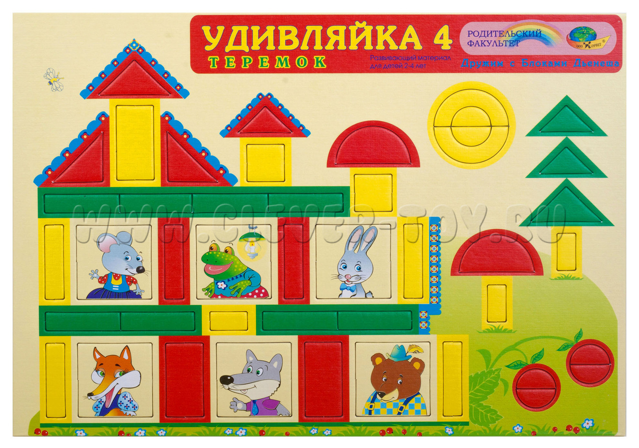 Удивляйка 4 - теремок расширит конструктивные навыки детей, познакомит их со счетом, нумерацией, будет способствовать развитию зрительного внимания, и развитию речи.