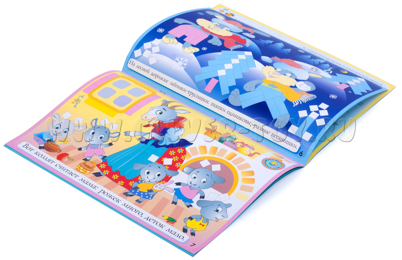 - на странице 7 можно не только выложить рожки, но и нащупать их, попытаться маме - козе их сосчитать