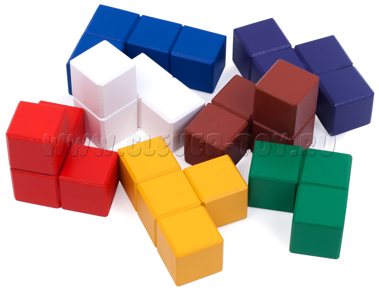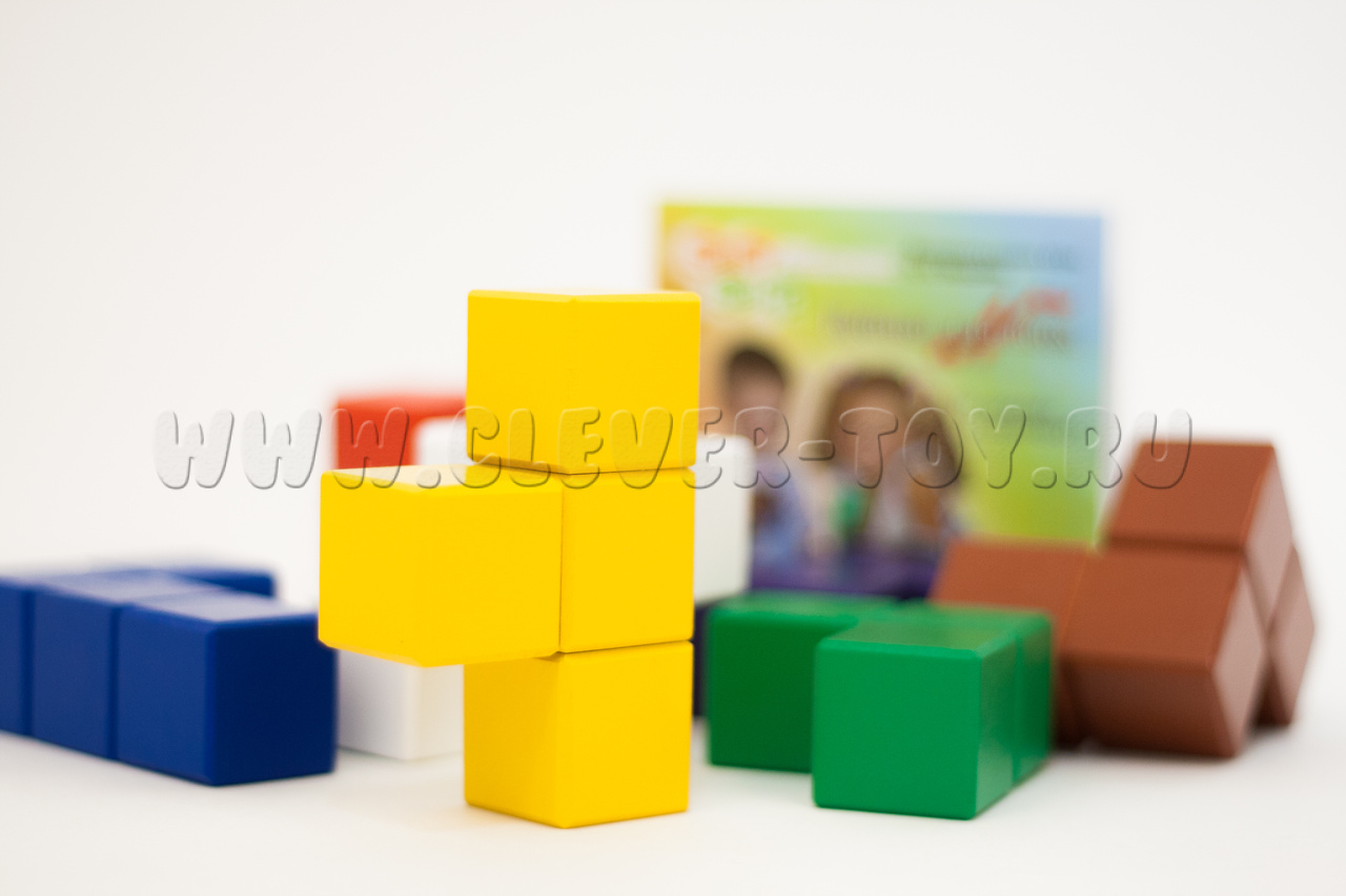 Размер кубиков (входящих в состав разных фигур): 3*3*3 см.