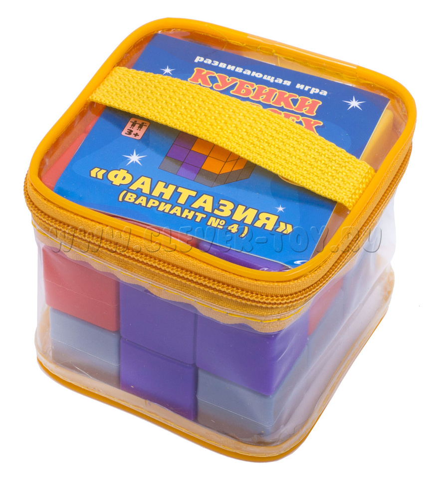 «Кубики для всех Фантазия»- это логическая игра из серии кубиков от ООО «Корвет». В серию также входят кубик № 1 «Уголки», кубик № 2 «Собирайка», кубик № 3 «Эврика» и кубик № 5 «Загадка». Самые простые варианты представлены в кубиках 1 и 2, усложнение – в кубиках 3,4,5.
