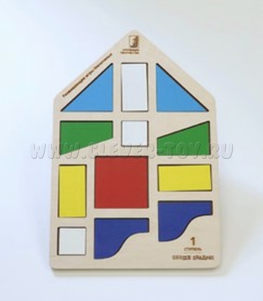 Деревянный планшет - "домик" - это методически правильная упаковка, где фрагменты квадратов хранятся в разобранном виде, что позволяет детям проявлять самостоятельность и творческое мышление.
