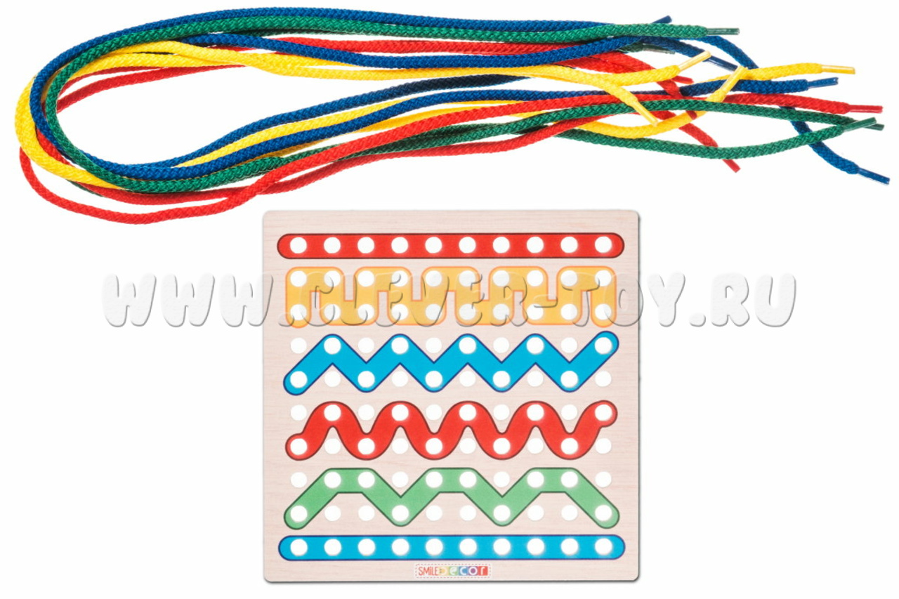 Материал: фанера, текстиль. Размер: 14,5 см*14,5 см. Комплектность набора: основа для шнурования 1 шт; цветные шнурки: 5 шт (60 см каждый).