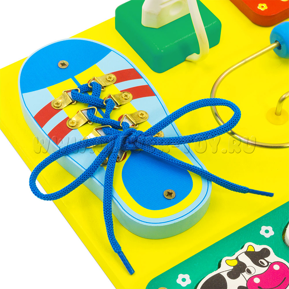 - Шнуровка 1 шт. Интерактивный элемент, играя с которым ребёнок сможет зашнуровать нарисованный кроссовок, и постепенно научиться шнуровать свою обувь.
