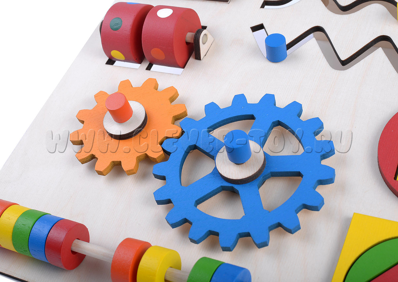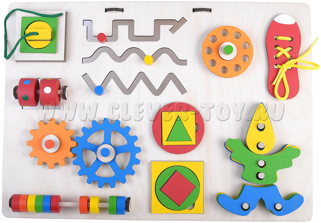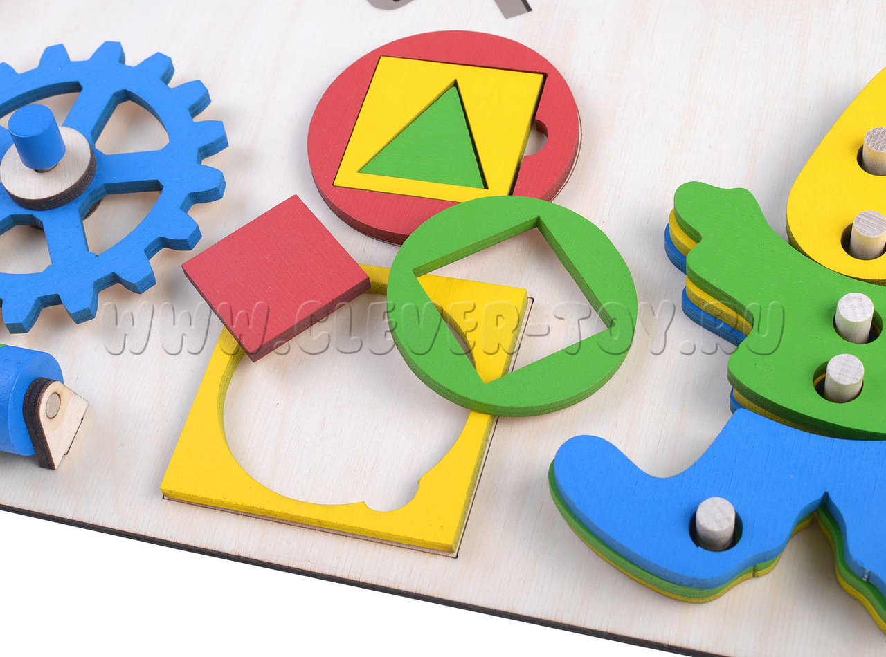 Развивающая доска ручной работы выполнена из экологически чистого материала – берёзы, абсолютно безопасна для детских пальчиков, все игровые элементы хорошо отшлифованы, покрыты яркой безопасной краской на водной основе.