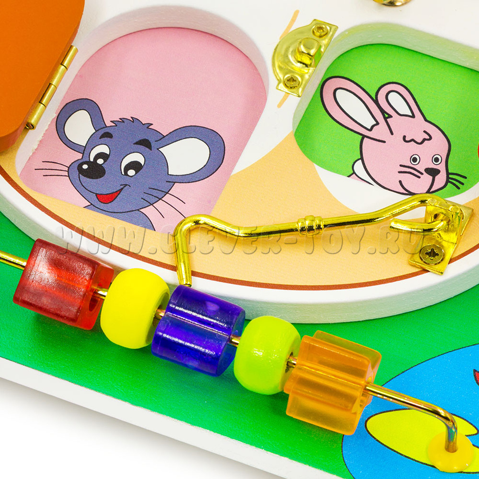 Потрясающий бизиборд завоюет внимание детишек, потому что выполнен по мотивам знакомой всем сказки. Яркие рисунки и мелкие детали привлекут маленькие пальчики и позволят насладиться процессом. В нашем интернет магазине вы сможете найти развивающие игрушки на любой бюджет. Так недорогой бизиборд "Теремок" обладает минималистичным дизайном и простым функционалом, который принесет огромную пользу вашим детям. Такая развивающая игрушка незаменимая вещь, как в детской комнате, так и в дошкольных учреждениях. Подойдет детям от 1 до 6 лет.