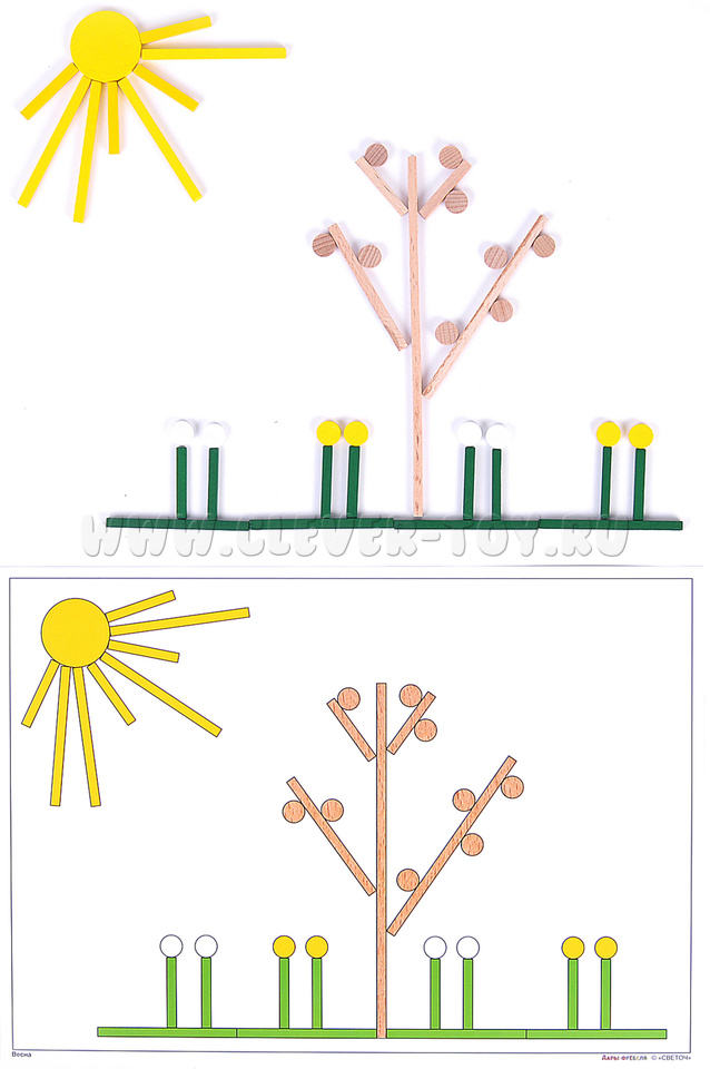- Выкладывание элементов мозаики самостоятельно путем зрительного соотнесения и сравнения с образцом;