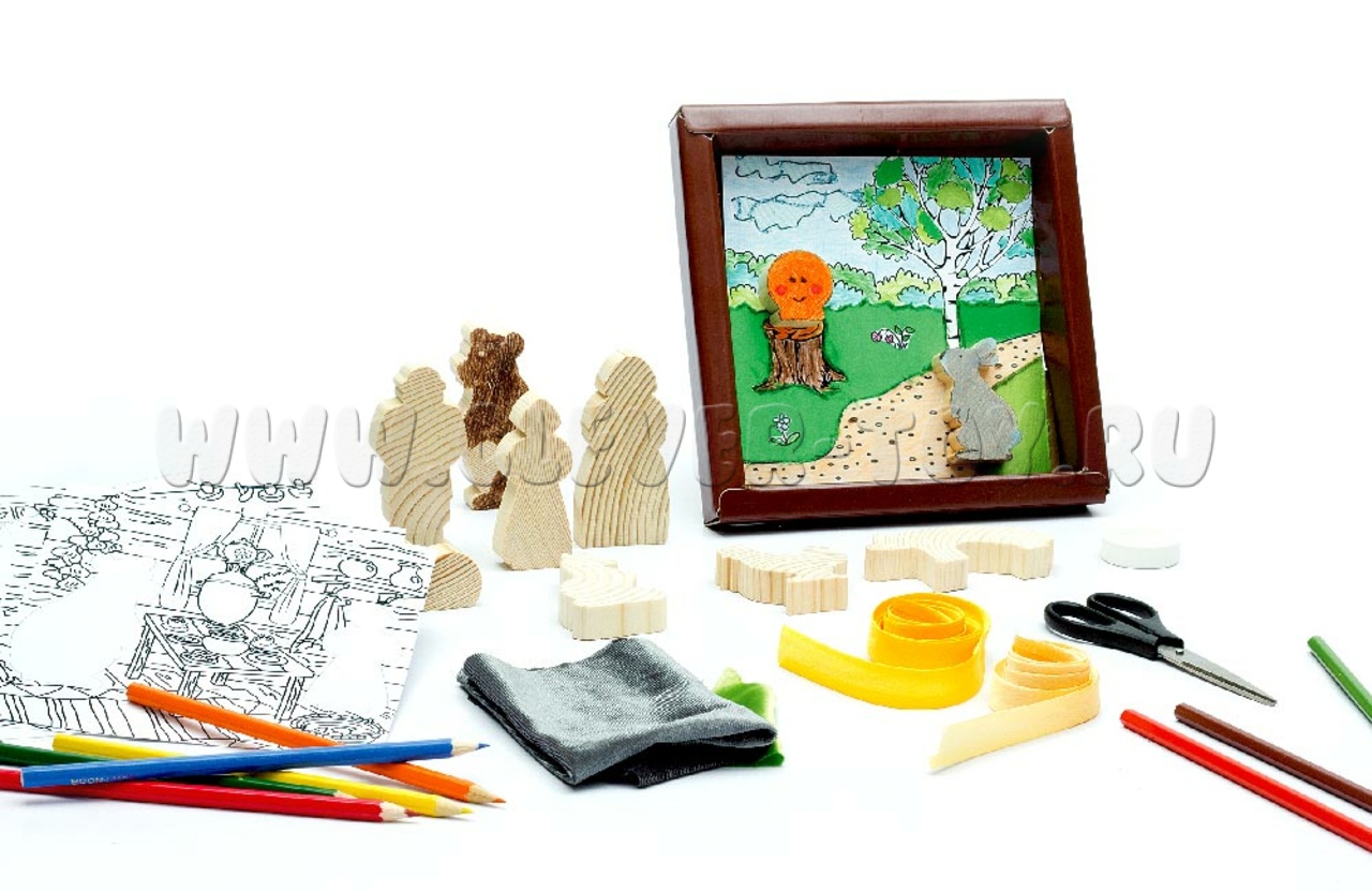 - Деревянные фигурки персонажей сказок - 11 деталей;