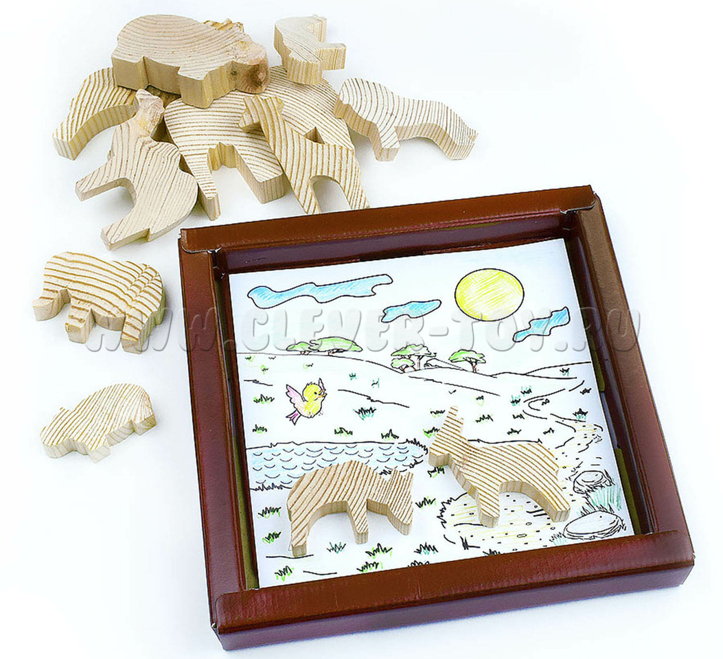 - Деревянные фигурки южных животных - 14 деталей;