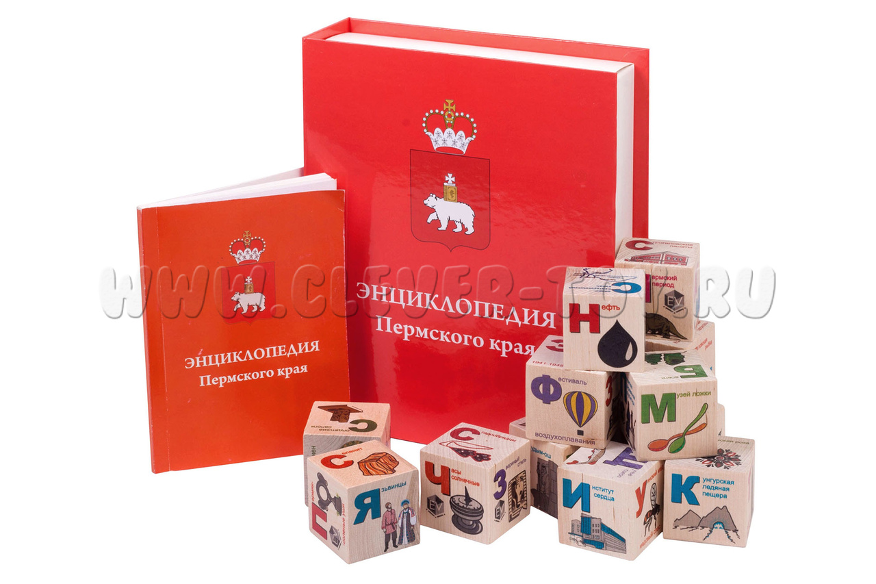 Набор «Энциклопедия Пермского края» состоит из 12 деревянных кубиков, на каждой грани которого нанесены буквы русского алфавита и картинка, изображающая символы истории, природы и культуры Пермского края: