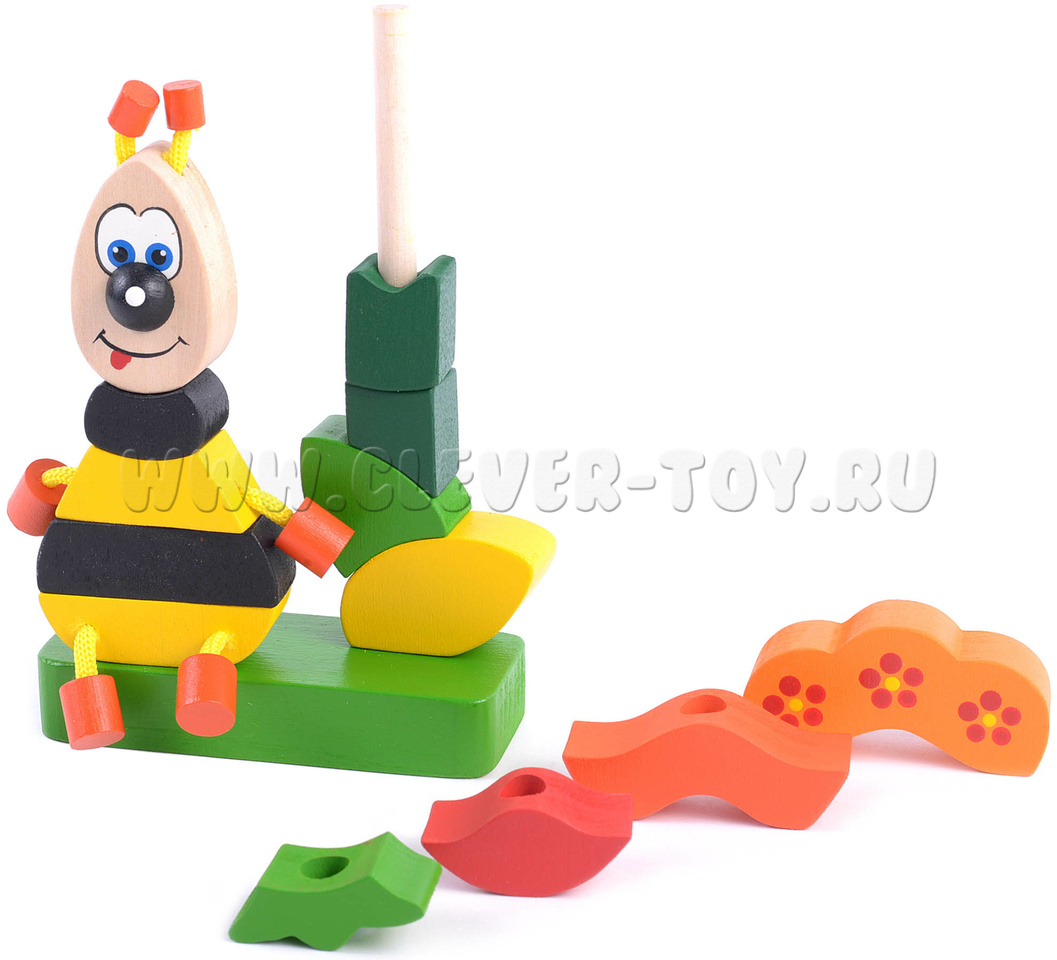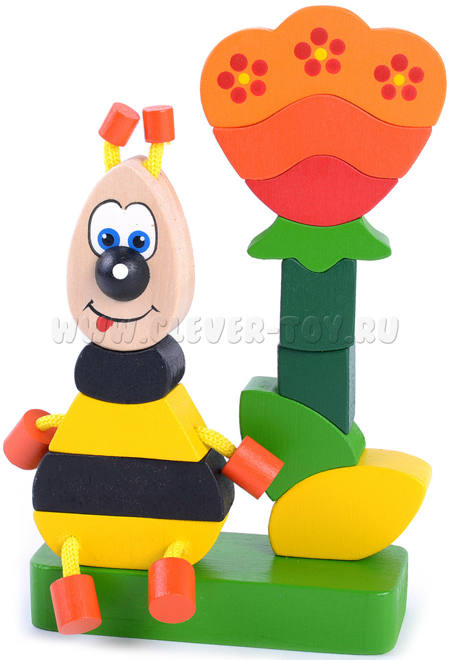 Из 14 деталей малыш соберет 2 любопытных персонажей - шмеля и цветок.