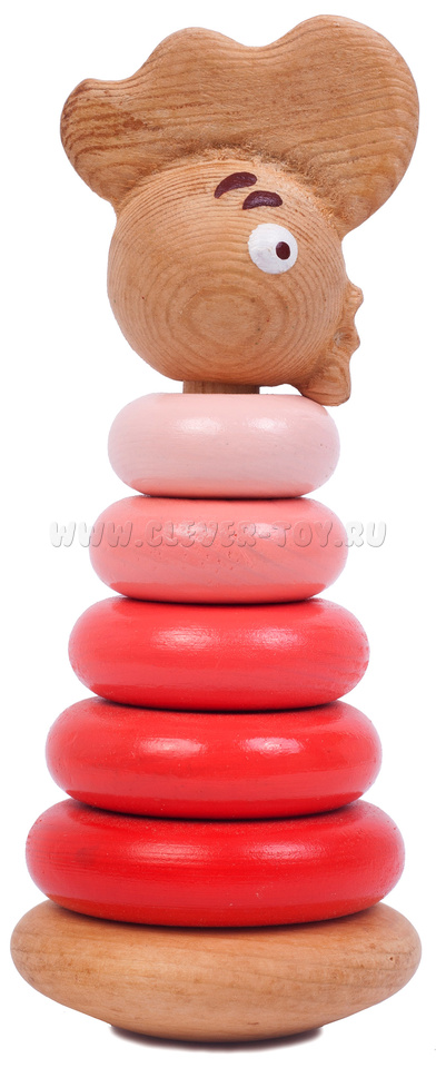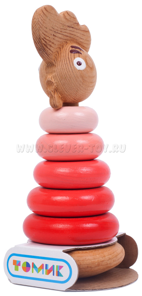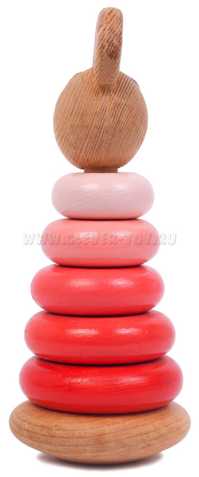 Пирамида "Петушок" состоит из 5 колец разных оттенков красного, головы петушка и стержня с основанием.