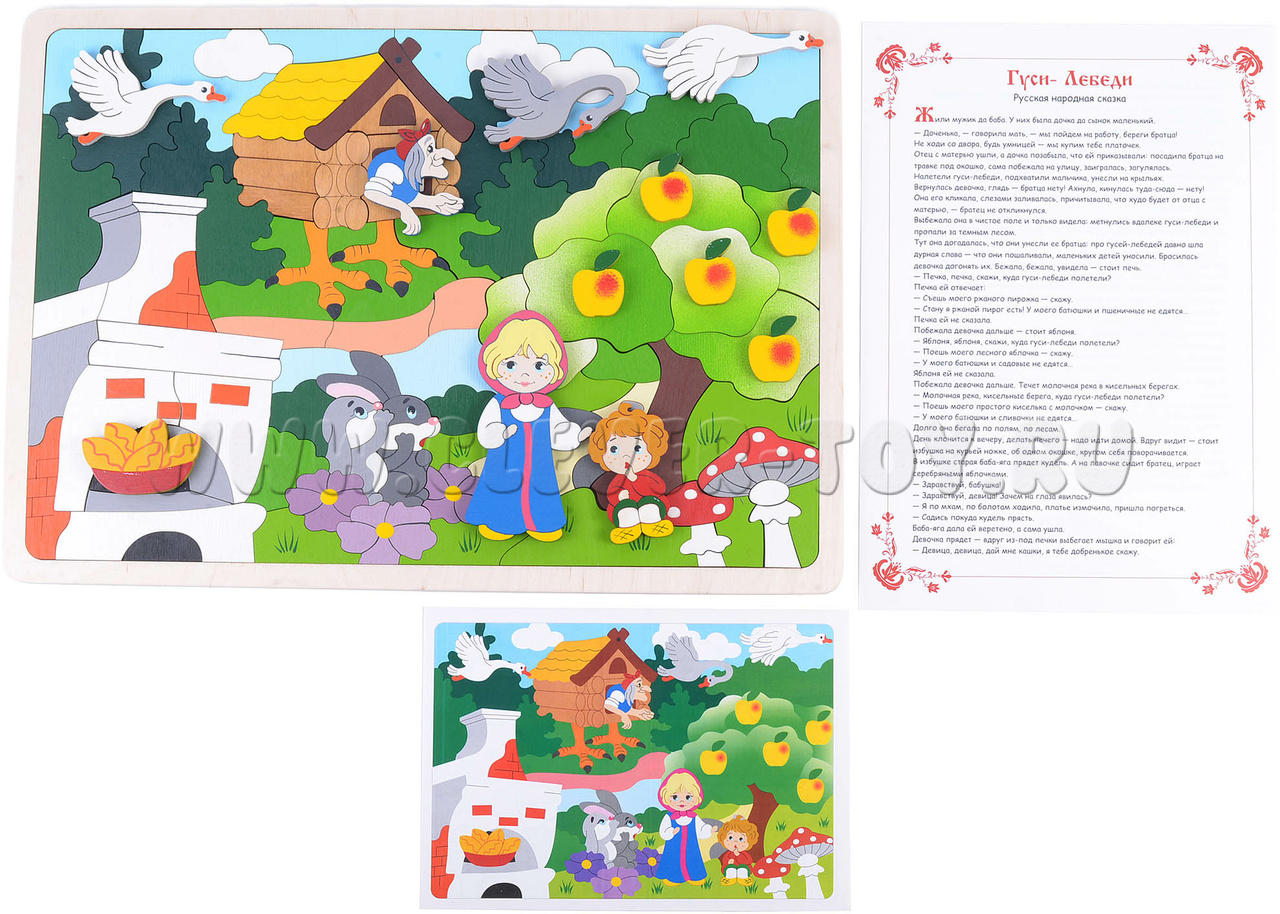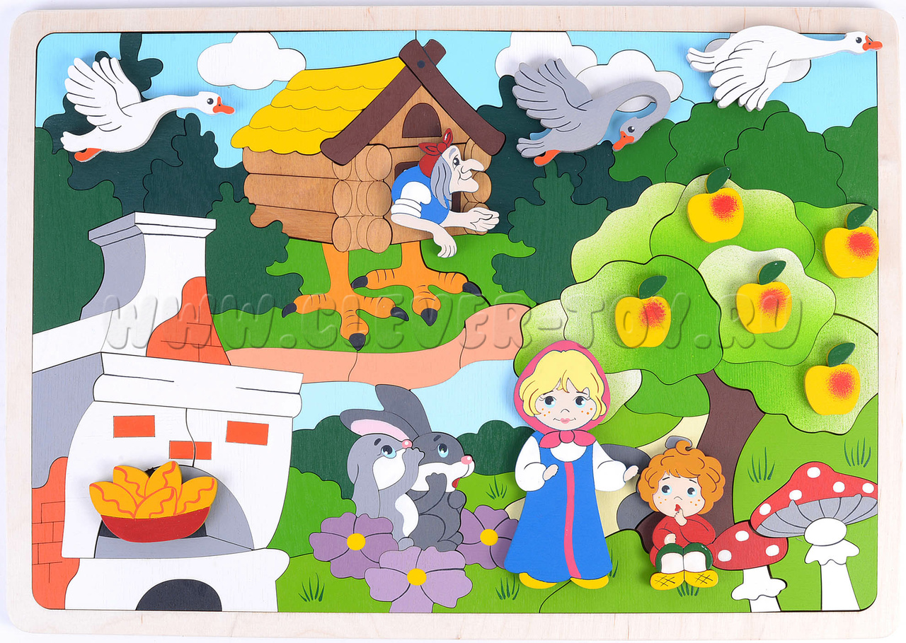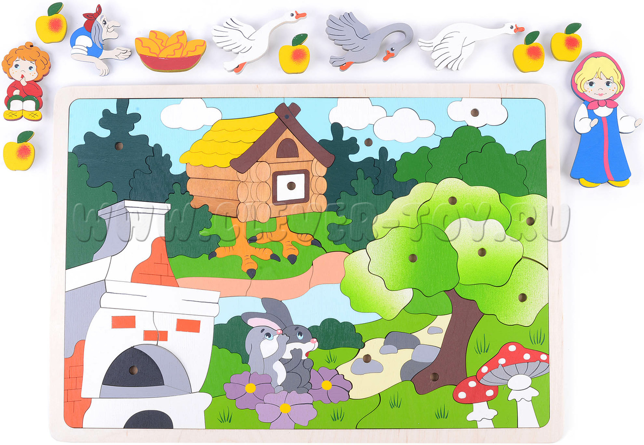 Увлекательный пазл из дерева в рамке по мотивам русской народной сказки "Гуси-Лебеди" позволит ребенку провести время с пользой. Игра способствует развитию внимания, усидчивости, пространственного мышления, мелкой моторики и координации движений рук, а это, в свою очередь, положительно сказывается на развитии речи.