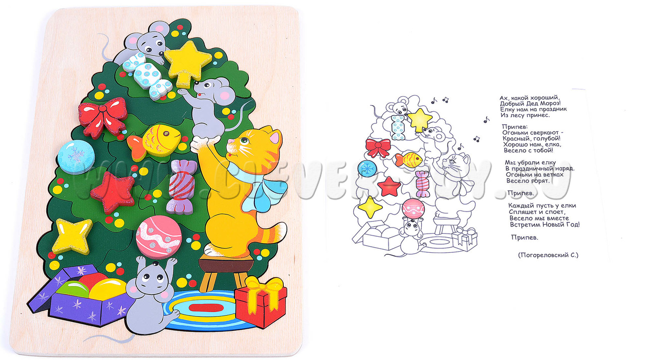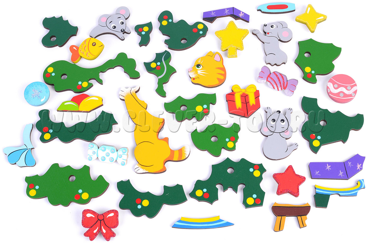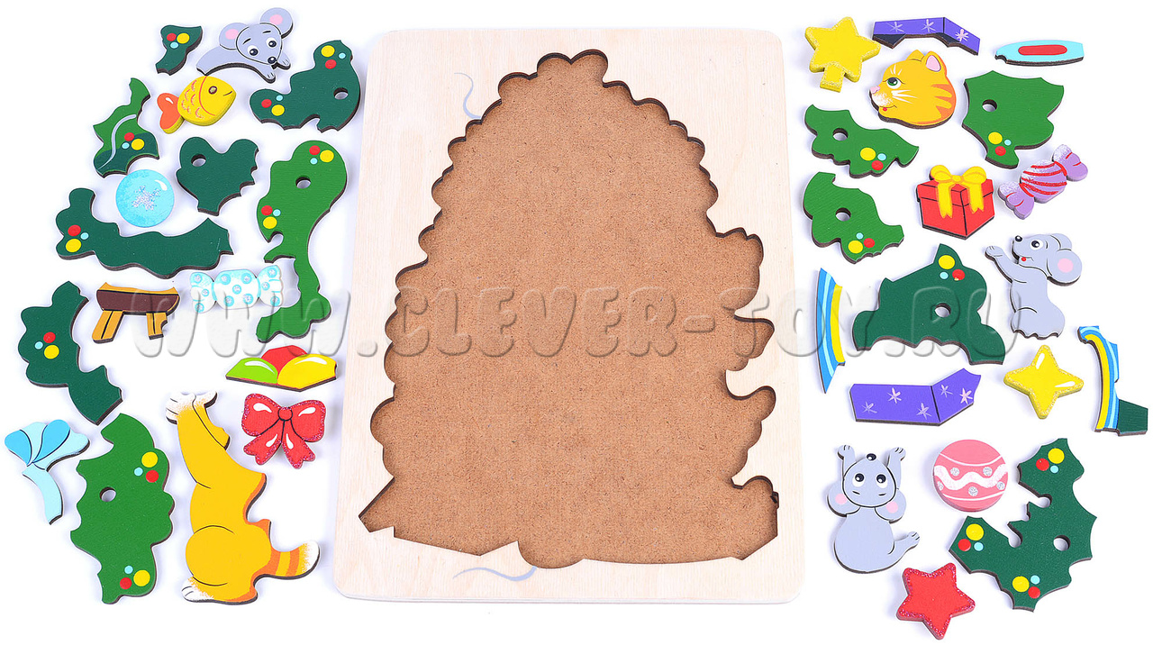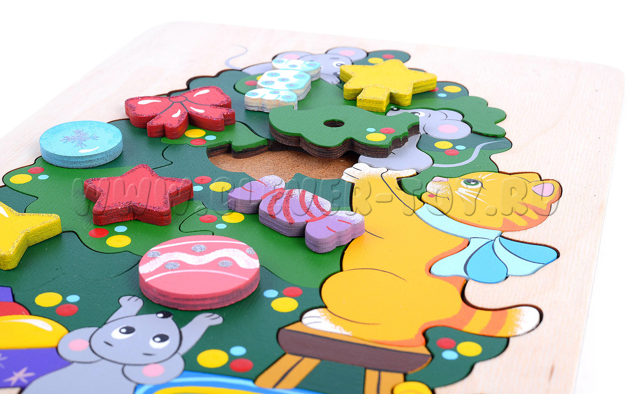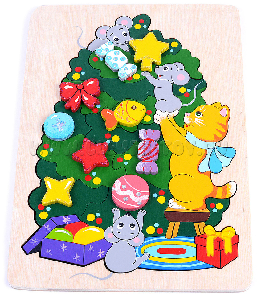 Игрушка-пазл поможет малышам развить пространственное и творческое мышление, осознать суть понятий "форма" и "цвет", а 9 дополнительных красочных элементов позволят детям и их родителям творчески подойти к решению головоломки, украсив уже собранную елочку игрушками в произвольном порядке.