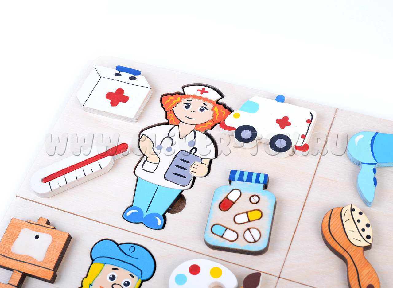 Деревянная мозаика «Профессии 3» - учебно-игровое пособие для развития представлений ребёнка о профессиях.