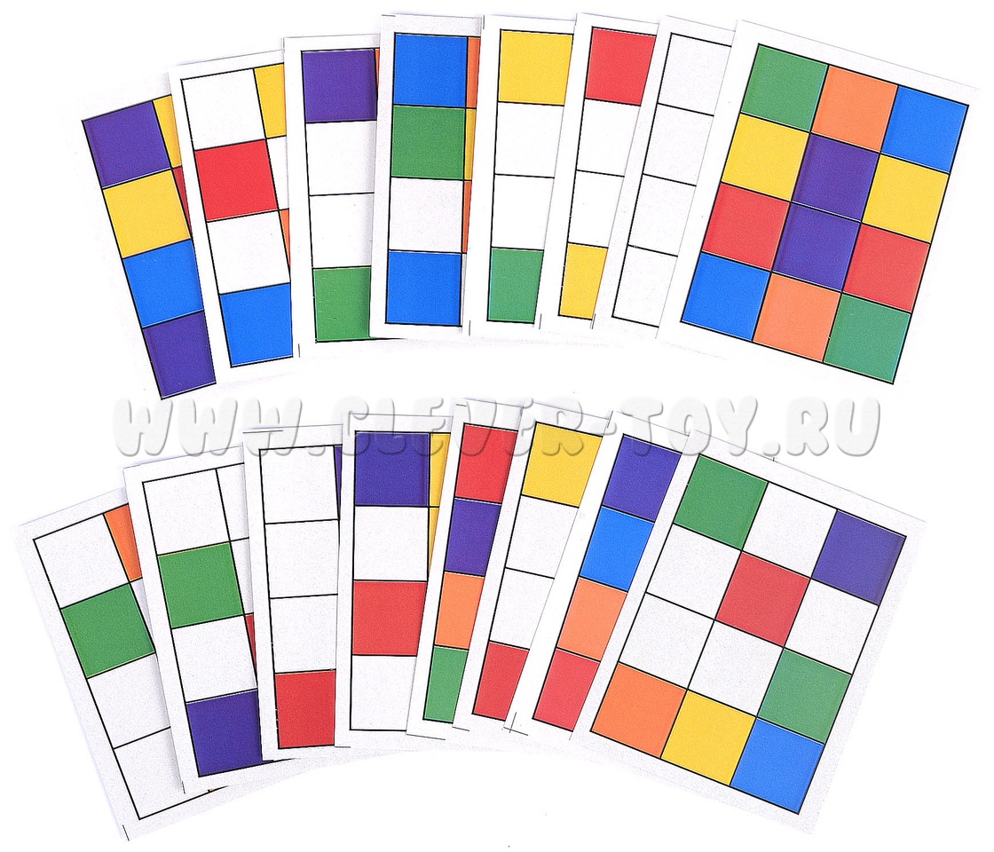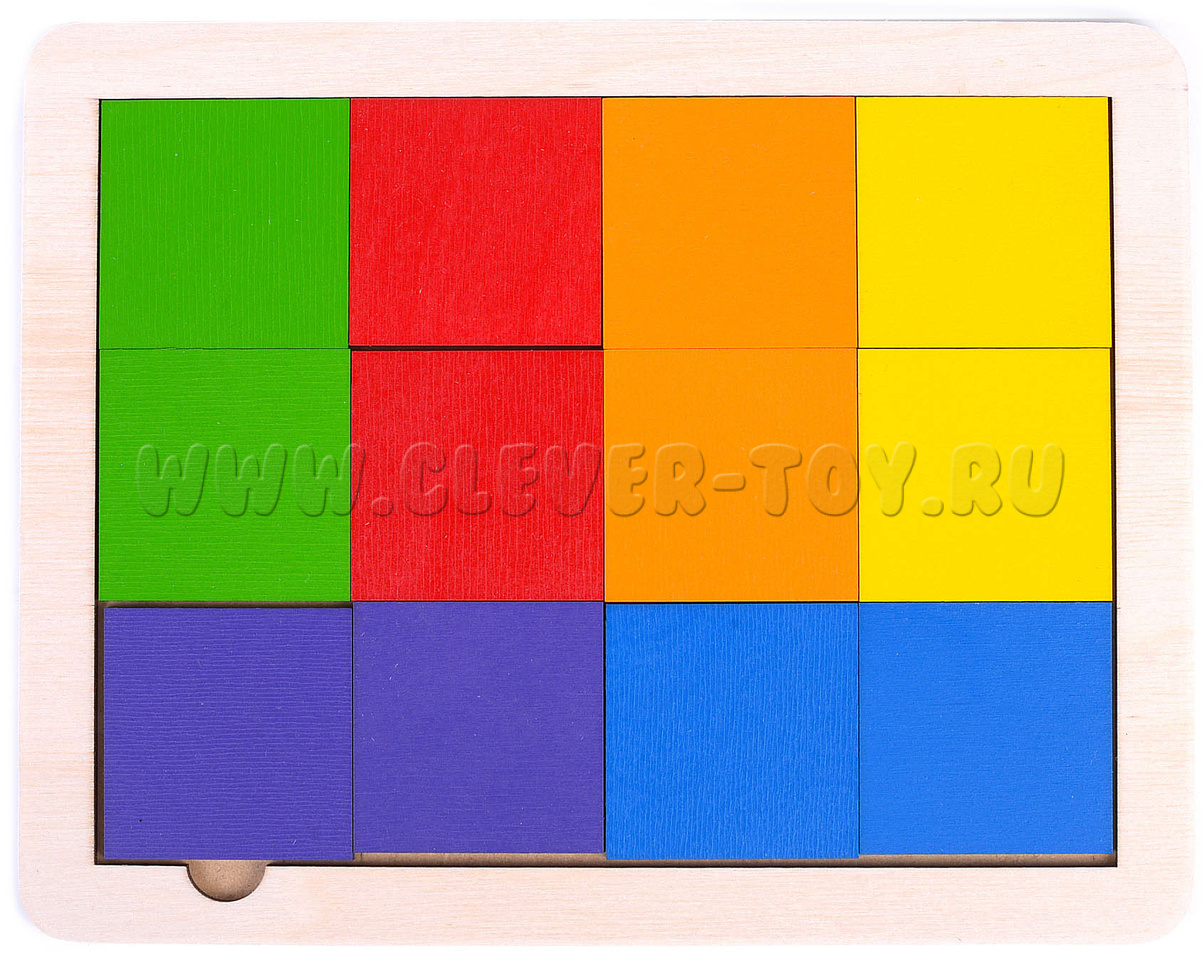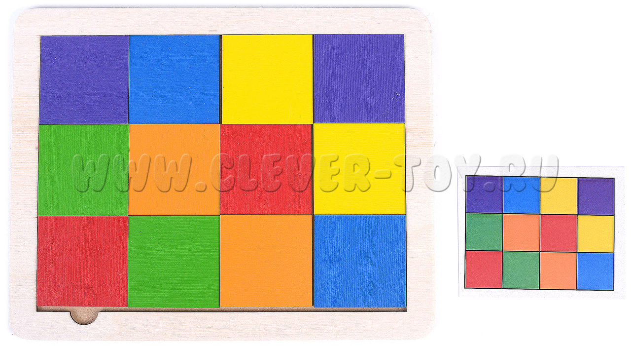 Задача ребенка: собрать по образцу рисунок в деревянной рамке из квадратов.