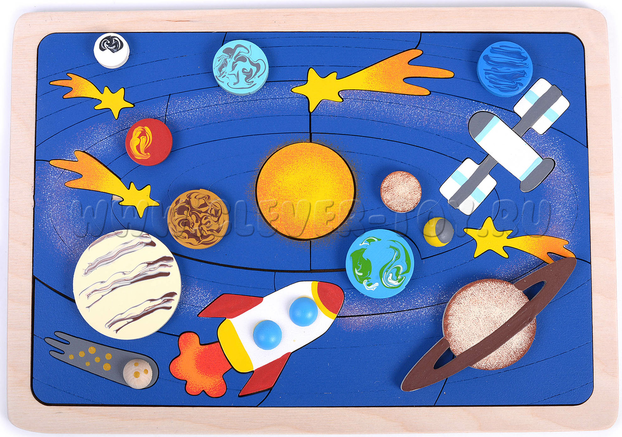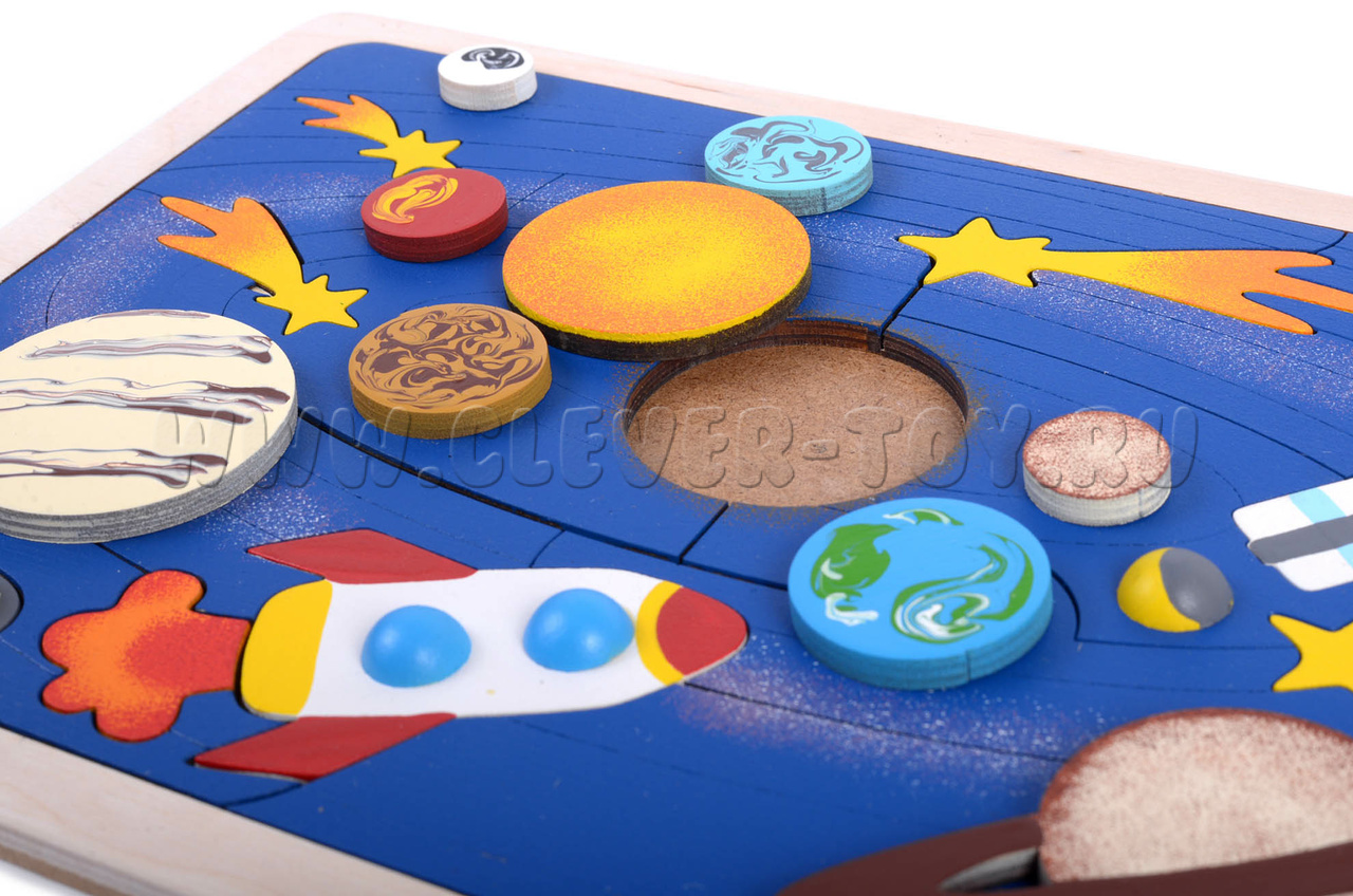 Мозаика «Солнечная система» даёт ребёнку представление об устройстве нашей системы и основах астрономии. С её помощью можно изучать движение планет, их удалённость от Солнца, цвет и размер.