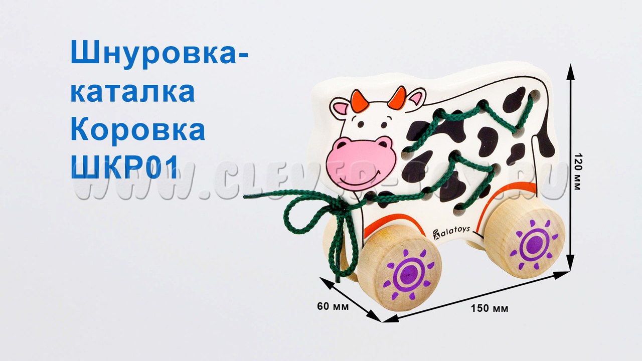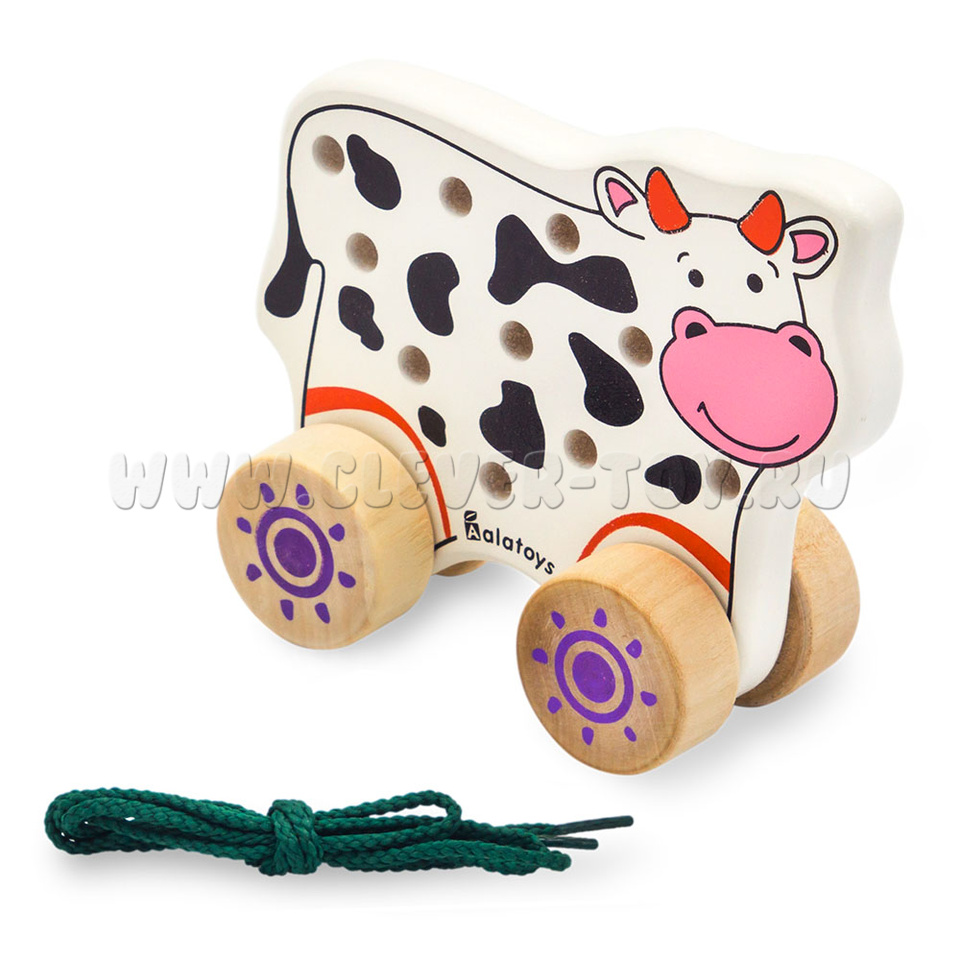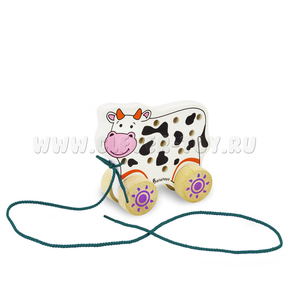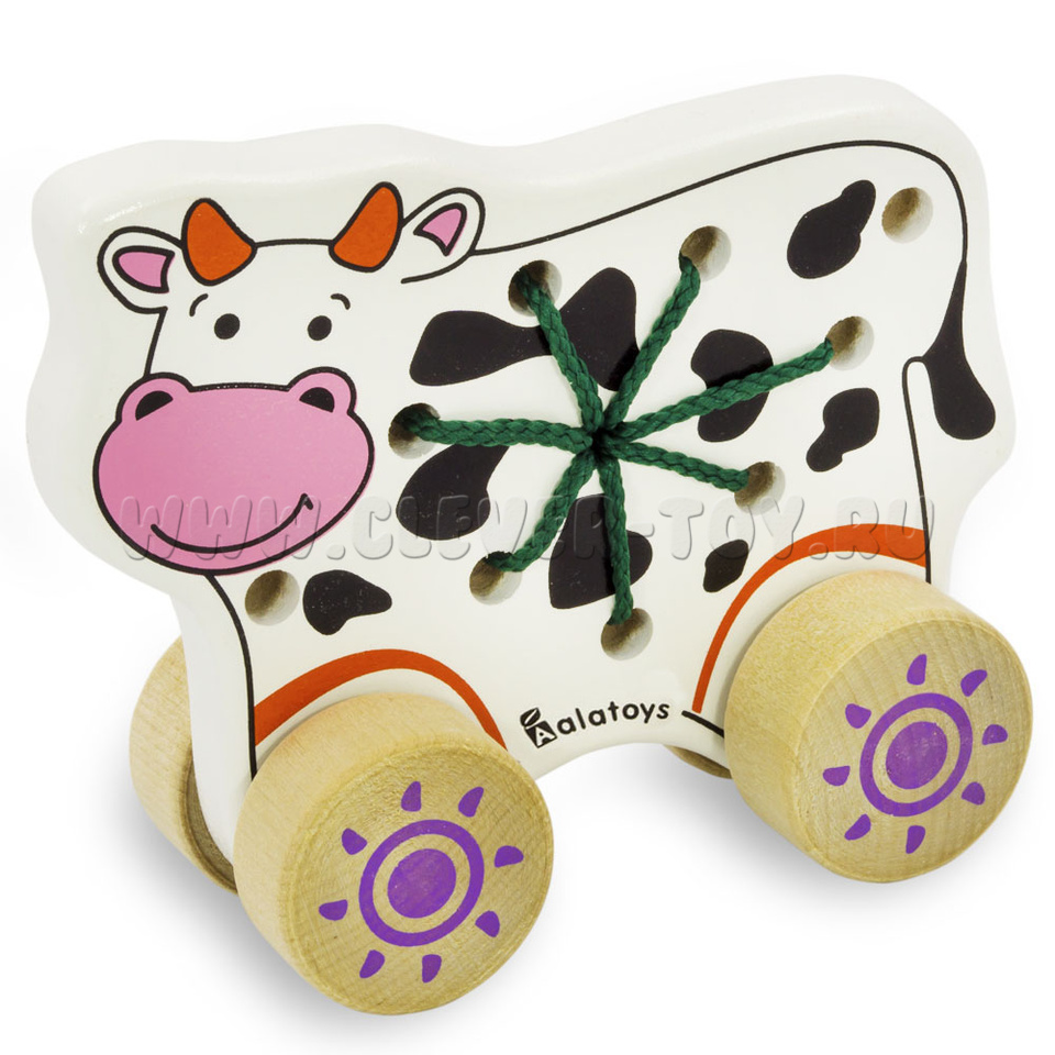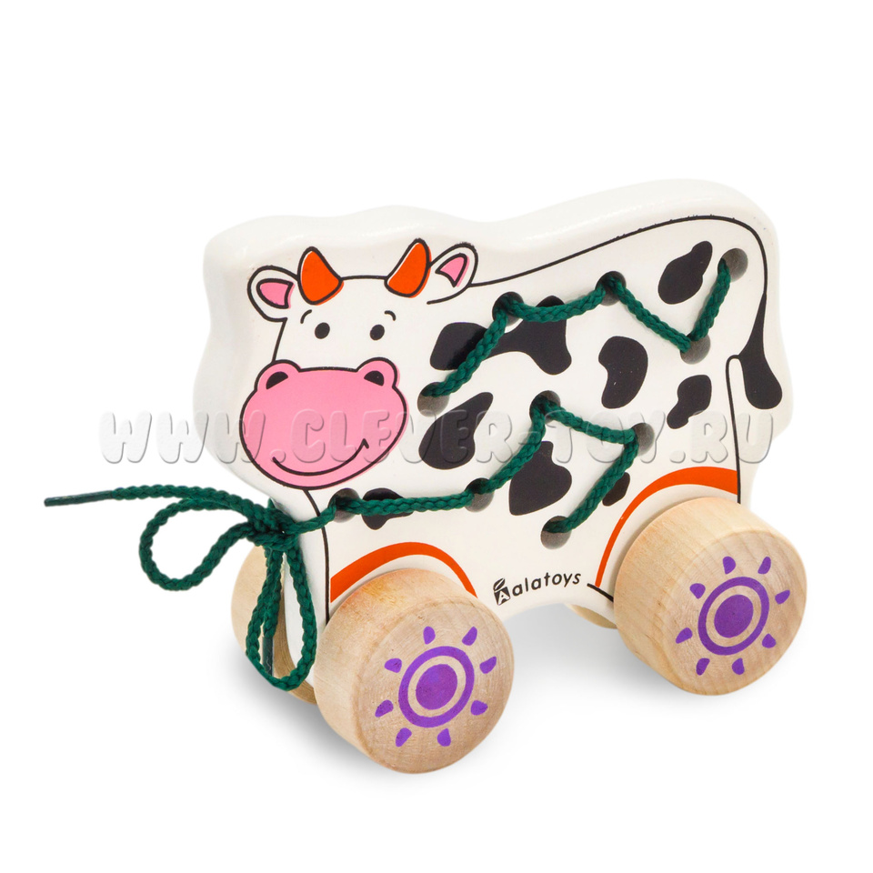 Деревянная корова моментально очарует малышей. Ведь ручки так и тянутся к ней, что бы покатать ее и потрогать. Самое замечательное в этой игрушке то, что она не просто каталка, но и шнуровка. Малыши смогут научиться усидчивости и терпению, когда, играя, будут совладать со своими пальчиками. Огромную пользую, она принесет детям, у которых трудности в речевом развитии, потому, что развивая моторику рук и пальцев, можно параллельно развивать участок коры головного мозга, отвечающий за формирование речи. Купить игрушку "Корову" можно в нашем магазине по привлекательной цене.