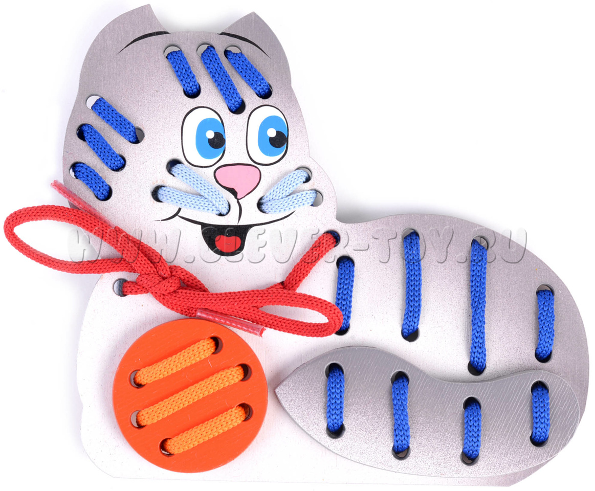 Шнуровка "Мурзик" предназначена для развития мелкой моторики и координации движений в игровой форме. Ребенок узнает, как пришиваются пуговицы и научится делать стежки.