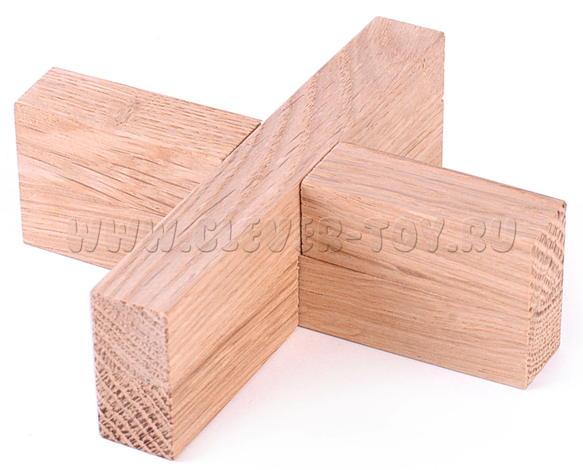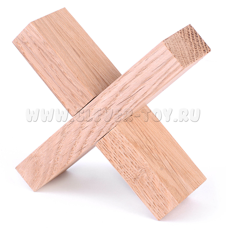 Эта конструкция состоит из двух брусочков, которые соединены крест-накрест. Задача в том, чтобы отцепить эти брусочки друг от друга. Вы быстро убедитесь, что это непросто.