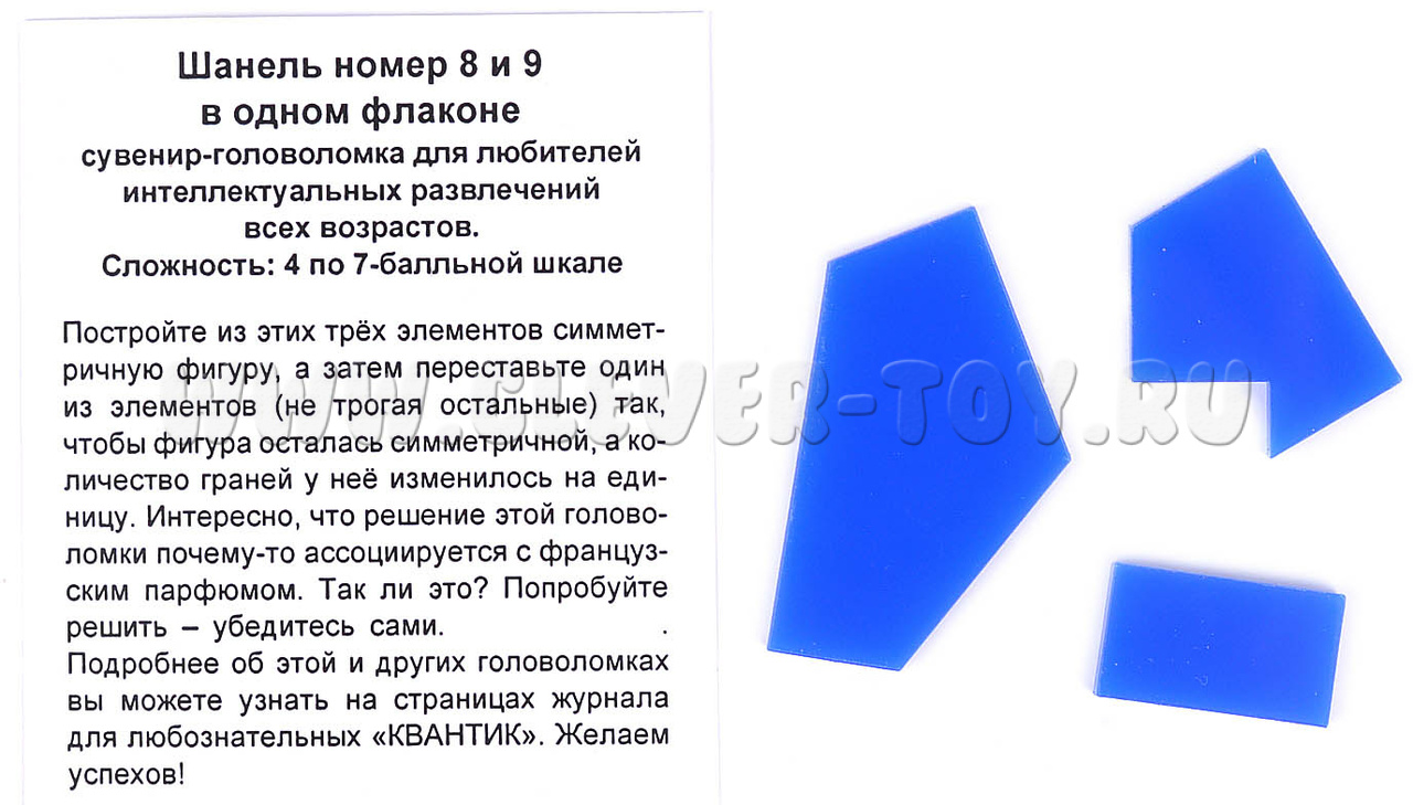 Задача: расположите элементы так, чтобы получилась симметричная фигура, а затем переставьте один элемент (не трогая другие) так, чтобы фигура осталась симметричной, а граней стало больше на одну.