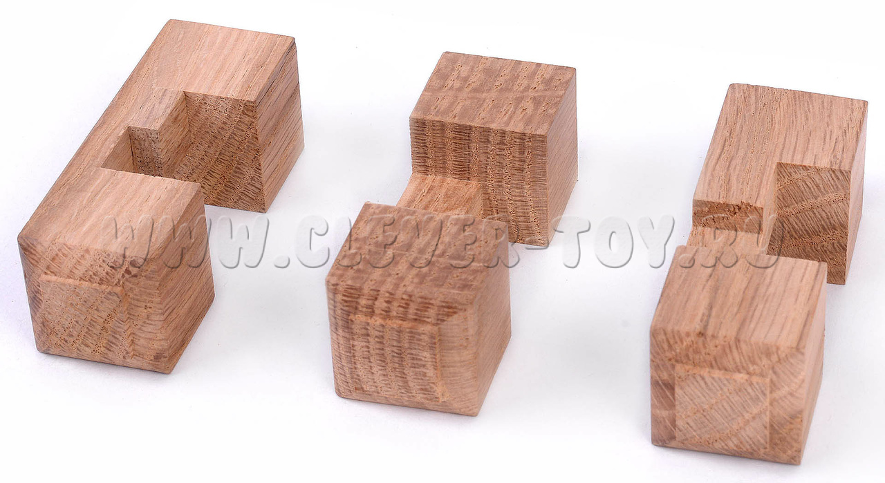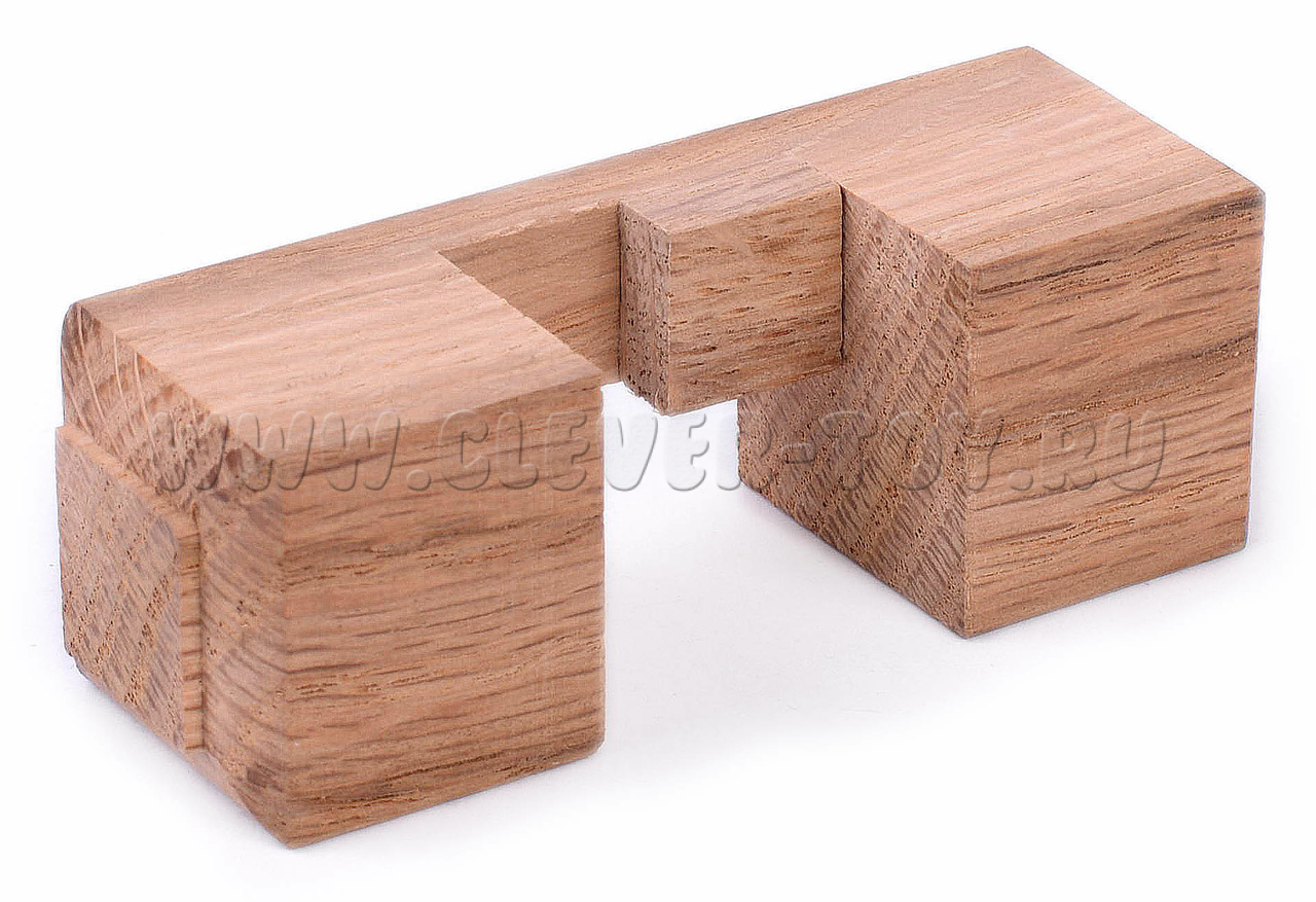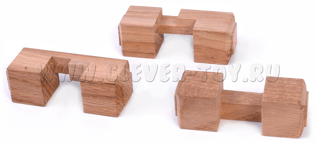 Задача состоит в том, чтобы распутать "узел", состоящий из трех брусочков, связанных между собой.