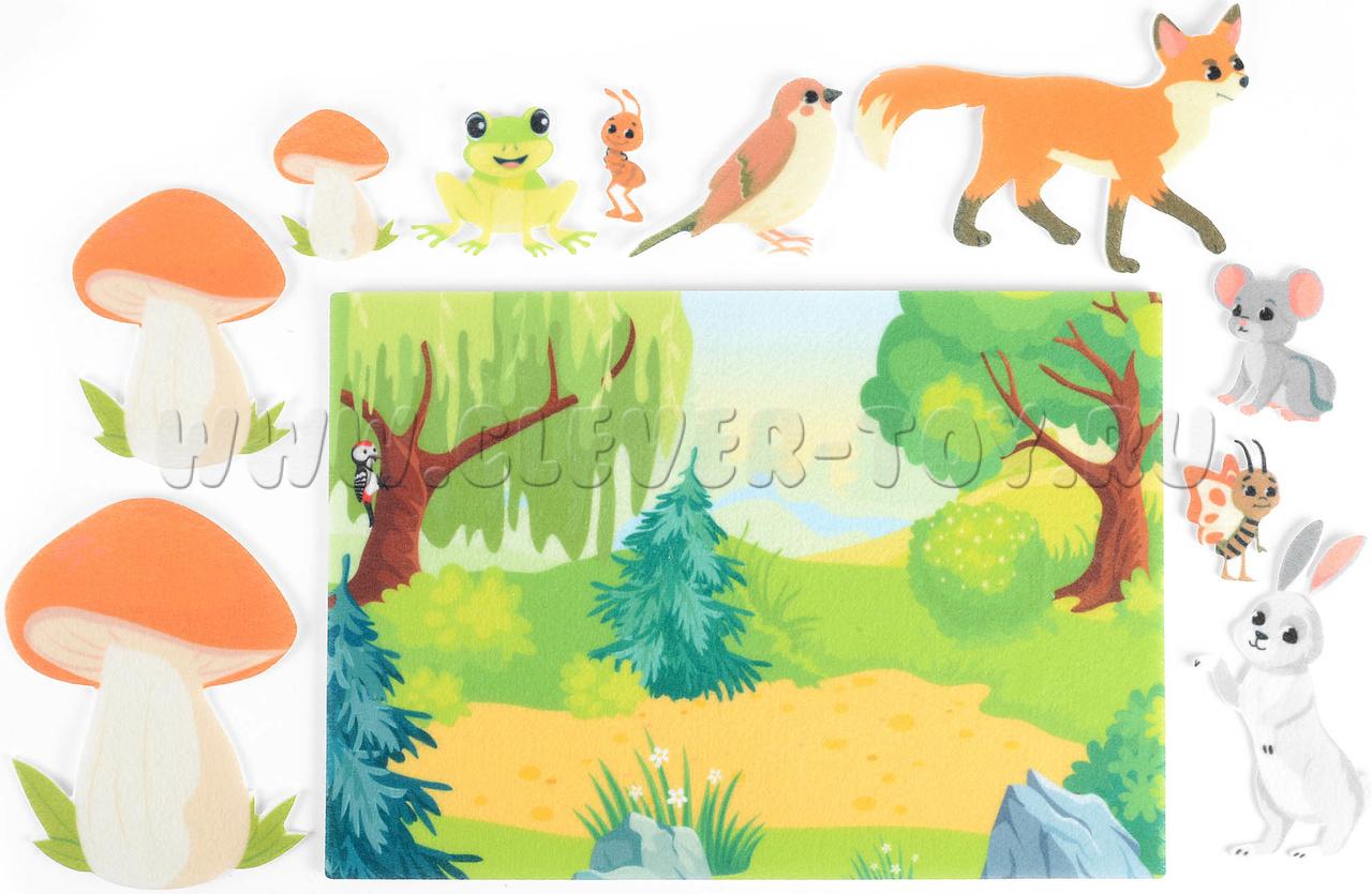 - Для изучения природы и животных: Ребенок может изучать различных обитателей леса, их внешний вид и поведение, играя с фигурками и перемещая их на игровом поле.