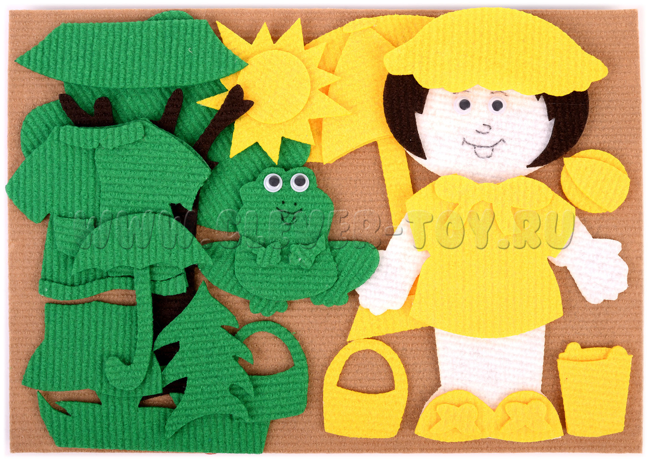 Размер фигурки девочки: 23,5*14,5 см. Размеры элементов: самый маленький – 5 см., самый большой – 24 см. Размер игрового поля: 33,5*26 см.