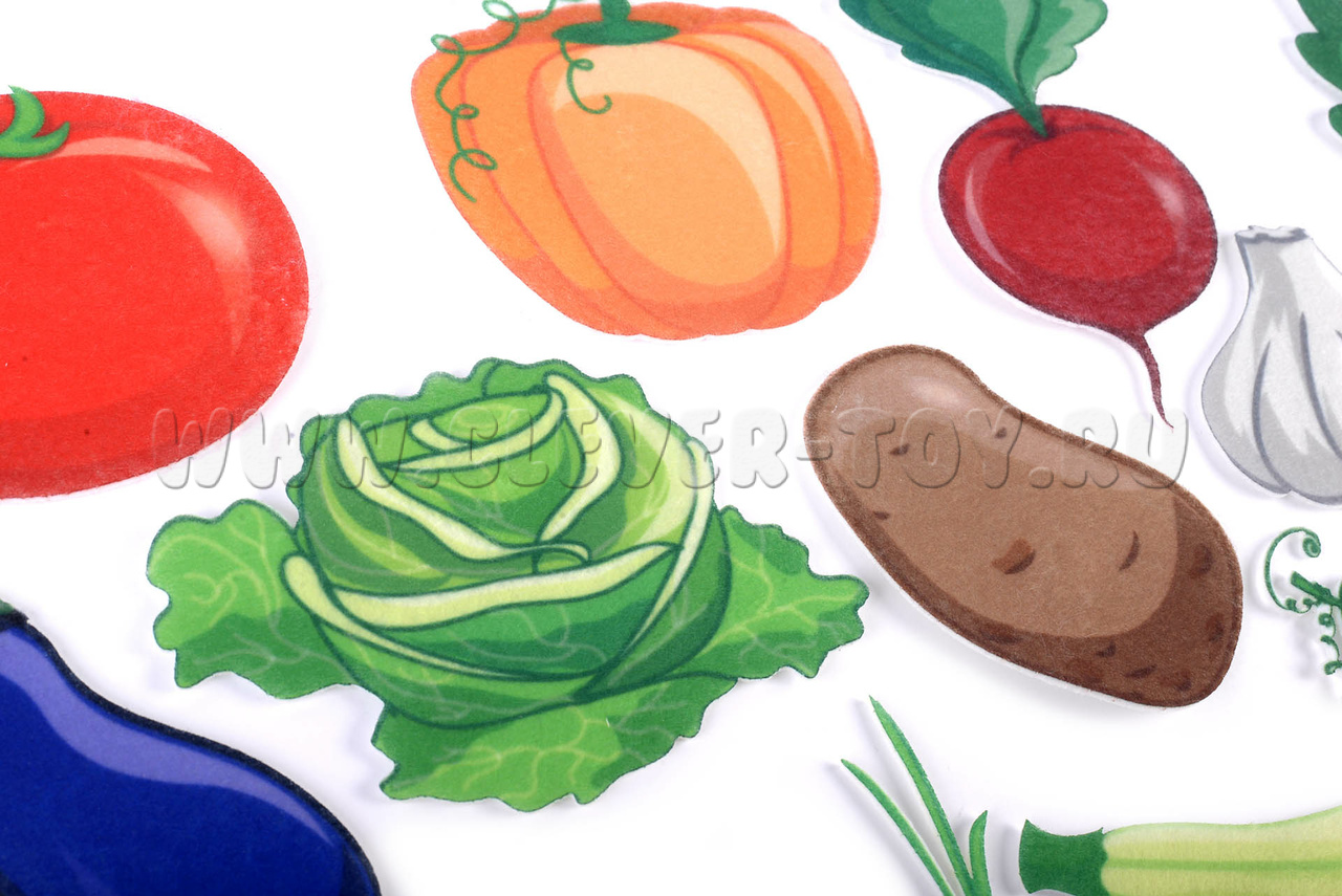 Игра включает в себя набор фигурок овощей, выполненных из мягкого и приятного на ощупь фетра. Каждый овощ имеет свой уникальный цвет и форму, что позволяет детям легко запомнить их названия и внешний вид.