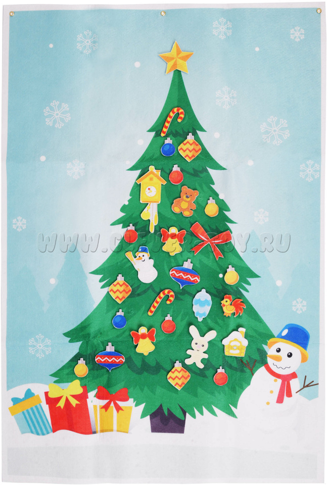 - большое игровое панно с нанесённым изображением ёлки, снеговика, и подарков под ёлкой;