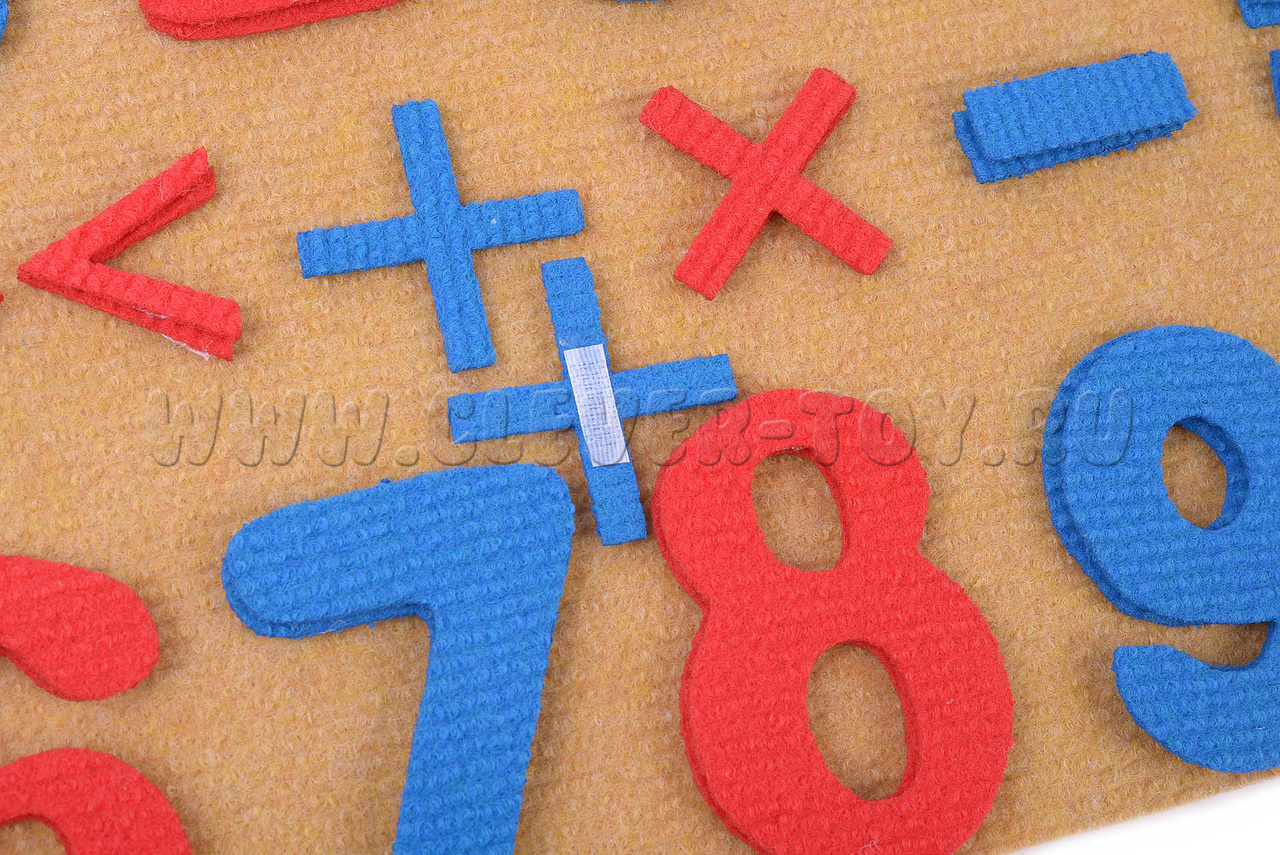 - математические знаки – 14 штук – плюсы, минусы, знак равенства, знаки «больше», «меньше»,