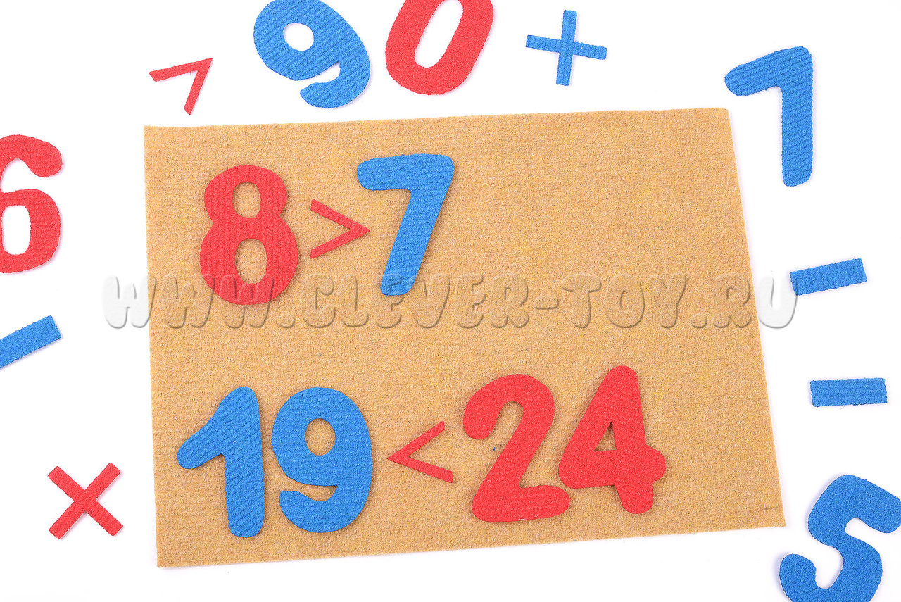 • математические знаки – 14 штук – плюсы, минусы, знак равенства, знаки «больше», «меньше»,