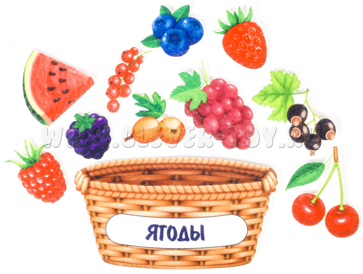 Размеры фигур: корзина – 18,5 * 10 см., ягоды – от 4 до 8 см.