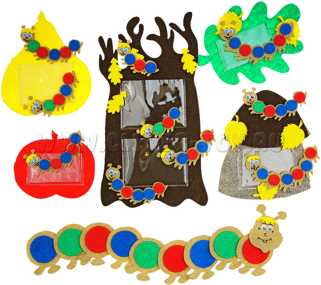 • звуковые гусенички: маленькие – 10 штук, большая – 1 шт., состоит из 9 кругов и головы.
