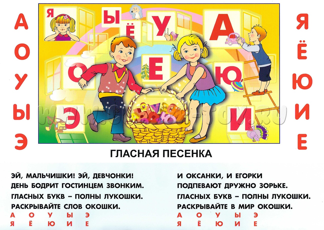 - Буквенный. Вместе с ребёнком Вы рассматриваете рисунки, читаете стихи, поёте песенки, придумываете сказки. На этом этапе особое внимание стоит обратить на гласные буквы и на буквы, которые определяют песенки слияния (Б, В, П, Р, Г и т.д. – согласные главные буквы).