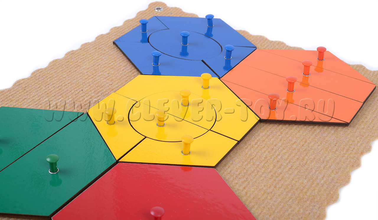 - Соты: целая – красного цвета, из 2-х частей – зелёного, из 4-х частей – оранжевого цвета; из 5-ти частей – жёлтого и синего цвета.