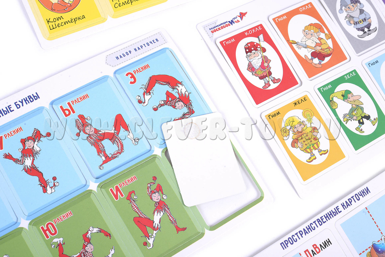 - разноцветные гномы – 10 карточек Кохле, Охле, Желе, Зеле, Геле, Селе, Фи, Черныш, Сержик, Белыш;