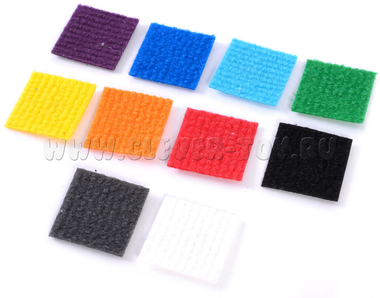- разноцветные квадраты – 10 разноцветных ковролиновых квадратов – белый, серый, чёрный и радужные цвета;