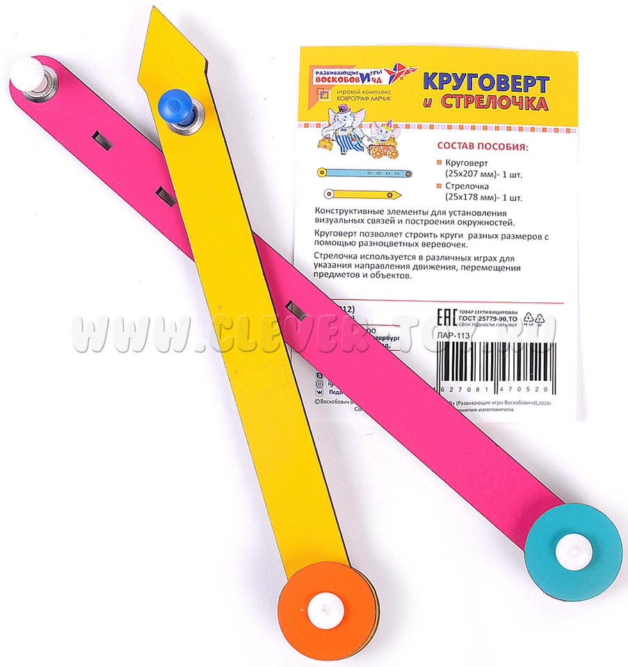 - круговерт и стрелочка - конструктивный элемент, который способствует установлению визуальных связей между игровыми пособиями и для построения простых геометрических форм.