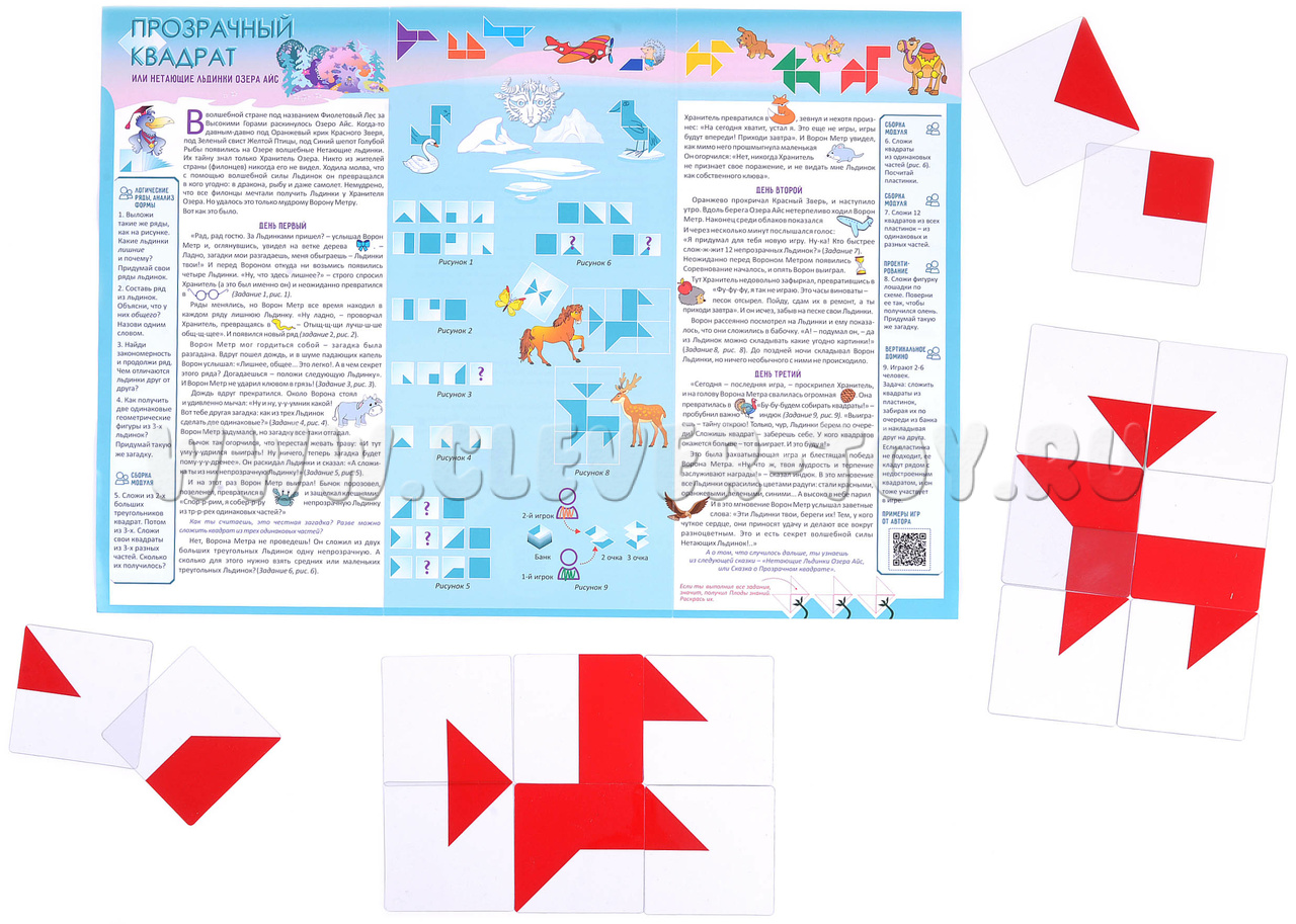 Красный Прозрачный квадрат от фирмы «Развивающие игры Воскобовича» - один из серии «Прозрачных квадратов» разных цветов (синий, жёлтый, зелёный). Пособия можно использовать по отдельности, а также комбинировать все 4 цвета квадратов, смешивая цвета и получая новые сочетания: оранжевый, фиолетовый, коричневый и т.д.