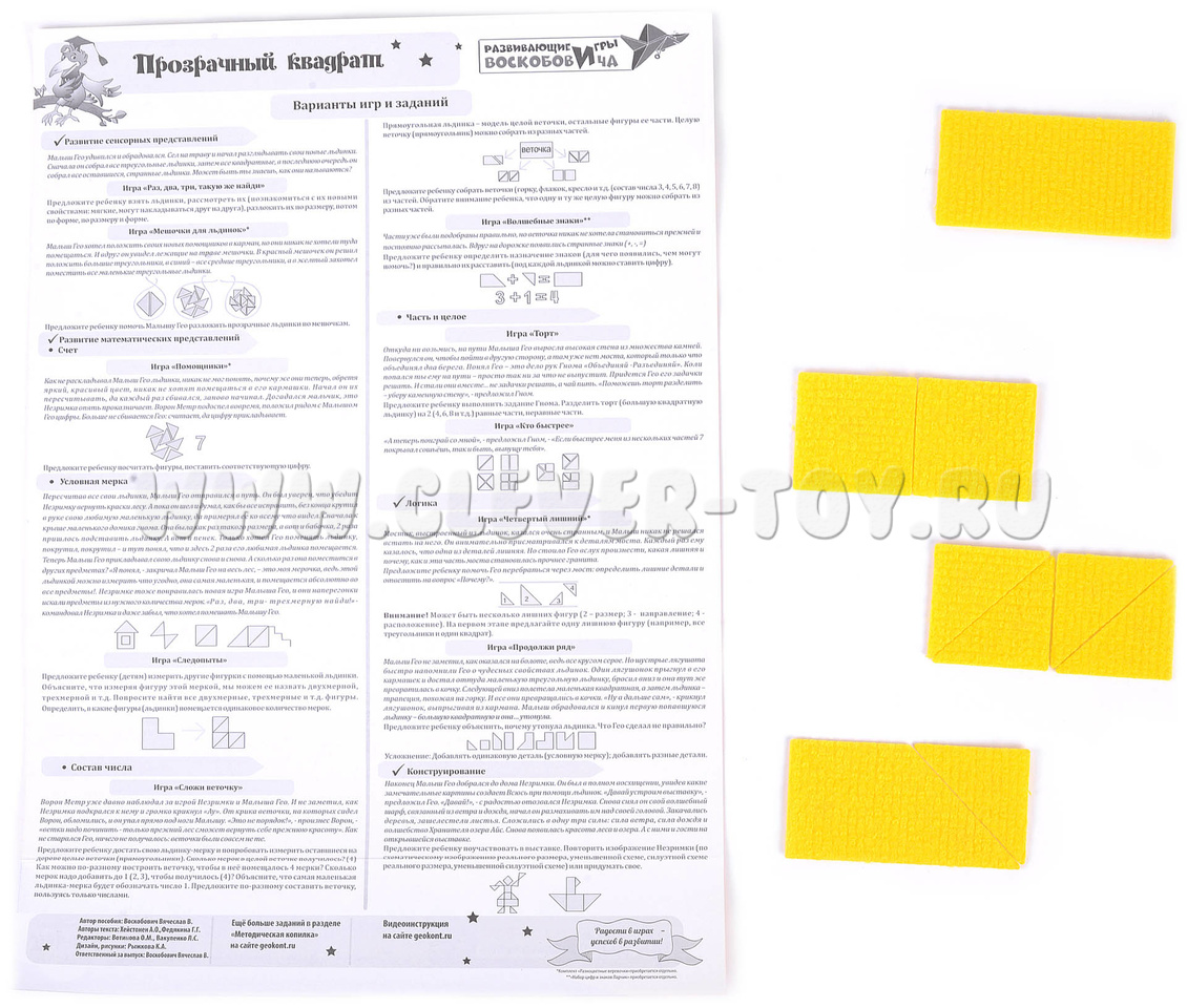 В набор входит также инструкция-подсказка для родителей и педагогов, в которую входит: