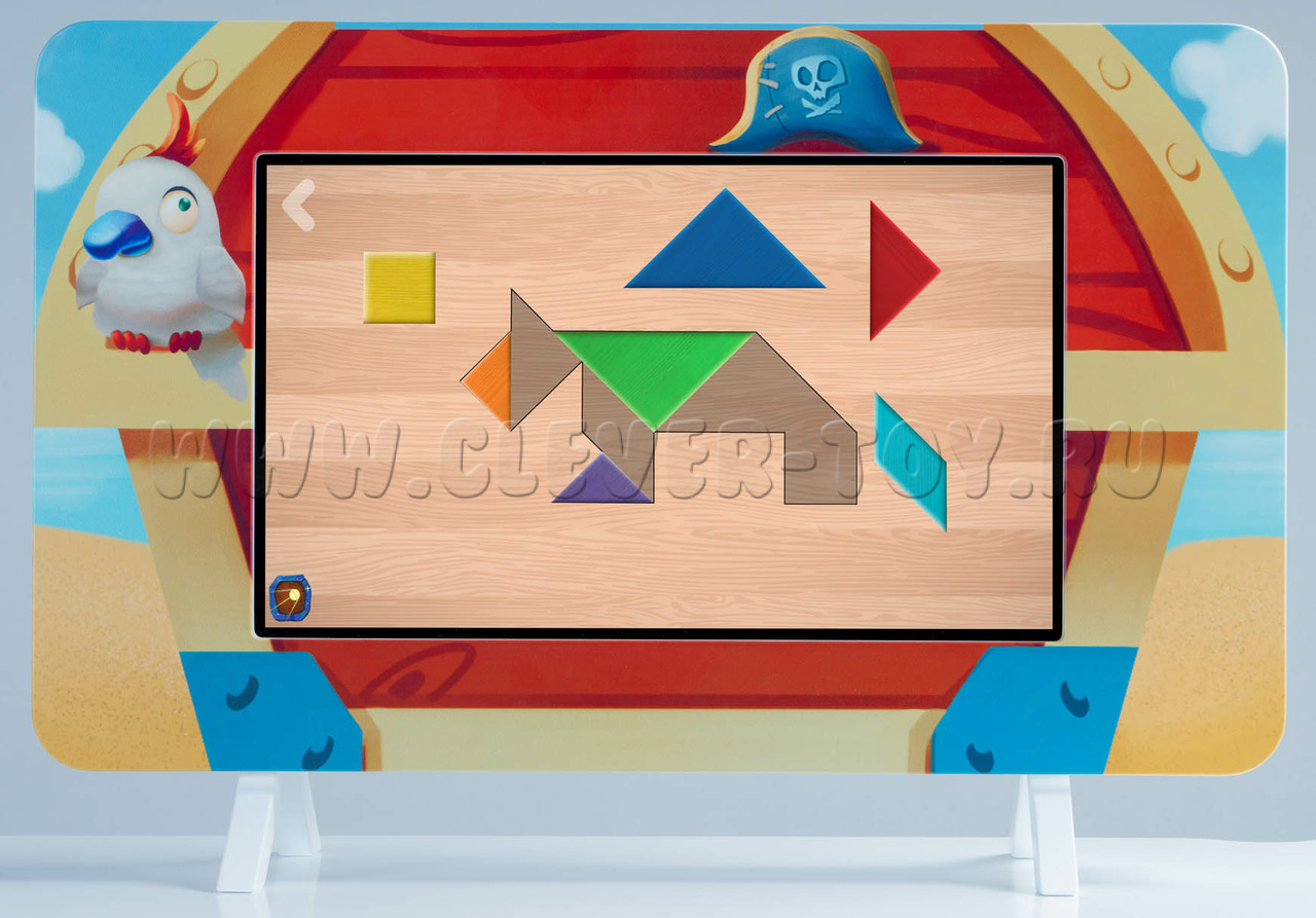 На игровой панели установлено программное обеспечение "АЛМА Дошкольное образование", включающее более 80 обучающих игр и 110 тестов, направленных на развитие памяти, внимания, логики, на изучение счета и английского языка.