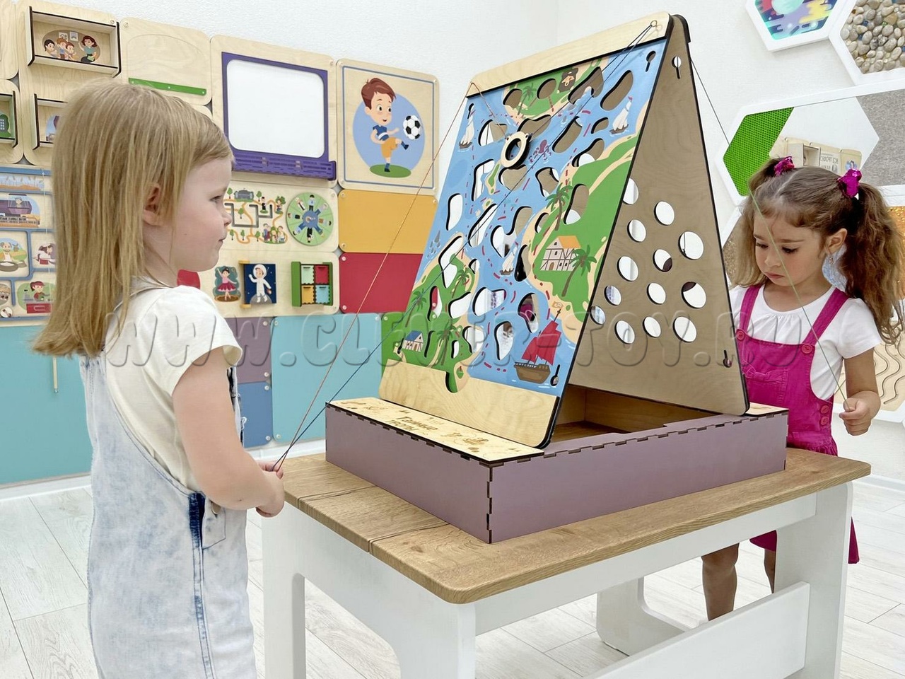 Обойти все препятствия-дыры очень непросто, для этого надо координировать работу сразу двух рук, что стимулирует нейронное взаимодействие больших полушарий головного мозга и связанные с ними высшие психические функции. Дети не только становятся более ловкими и внимательными, но и легче осваивают чтение, письмо, решение логических задач.