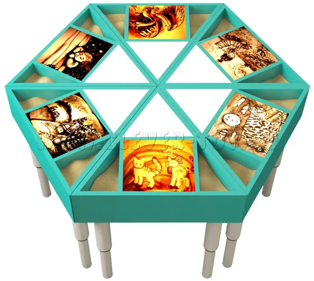 - 6 столов (мест) для рисования песком (в каждом по 3 отсека для песка, формочек и игрушек)