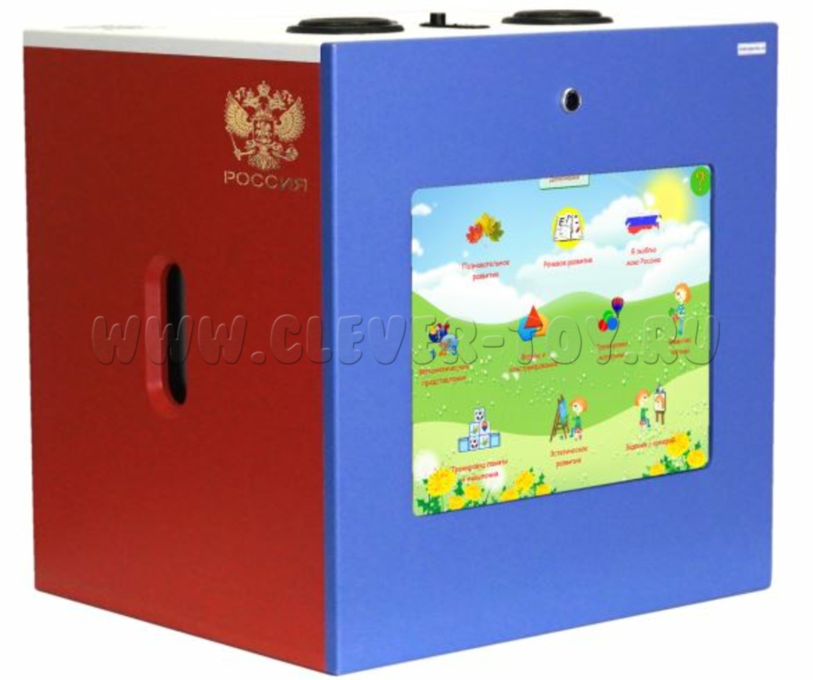 Благодаря оригинальной запатентованной конструкции и небольшим габаритам, этому комплексу патриотического воспитания найдется место в любом, даже в самом маленьком уголке ДОУ или школы. Куб оснащен антивандальным сенсорным монитором и может быть установлен для занятий на столе или на полу (экраном вверх).
