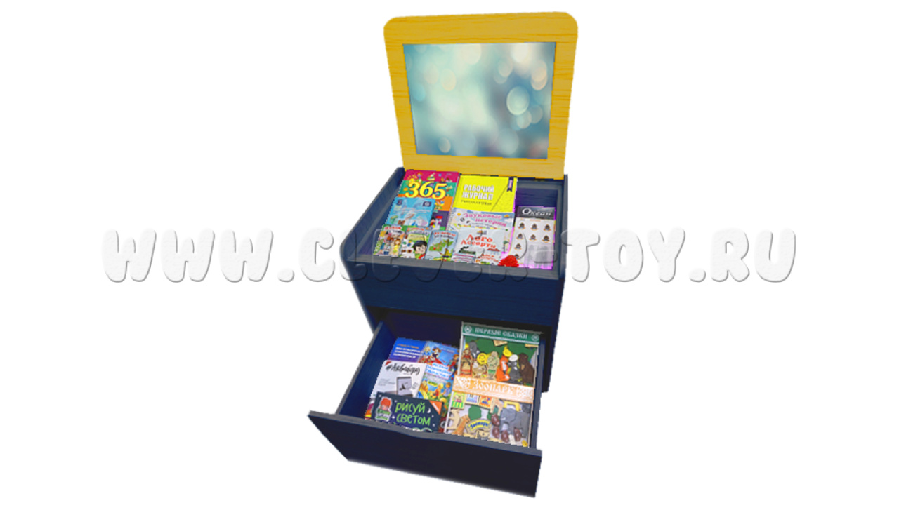 • встроенный ящик для хранения материалов и защитная крышка-столешница со встроенным акриловым зеркалом.