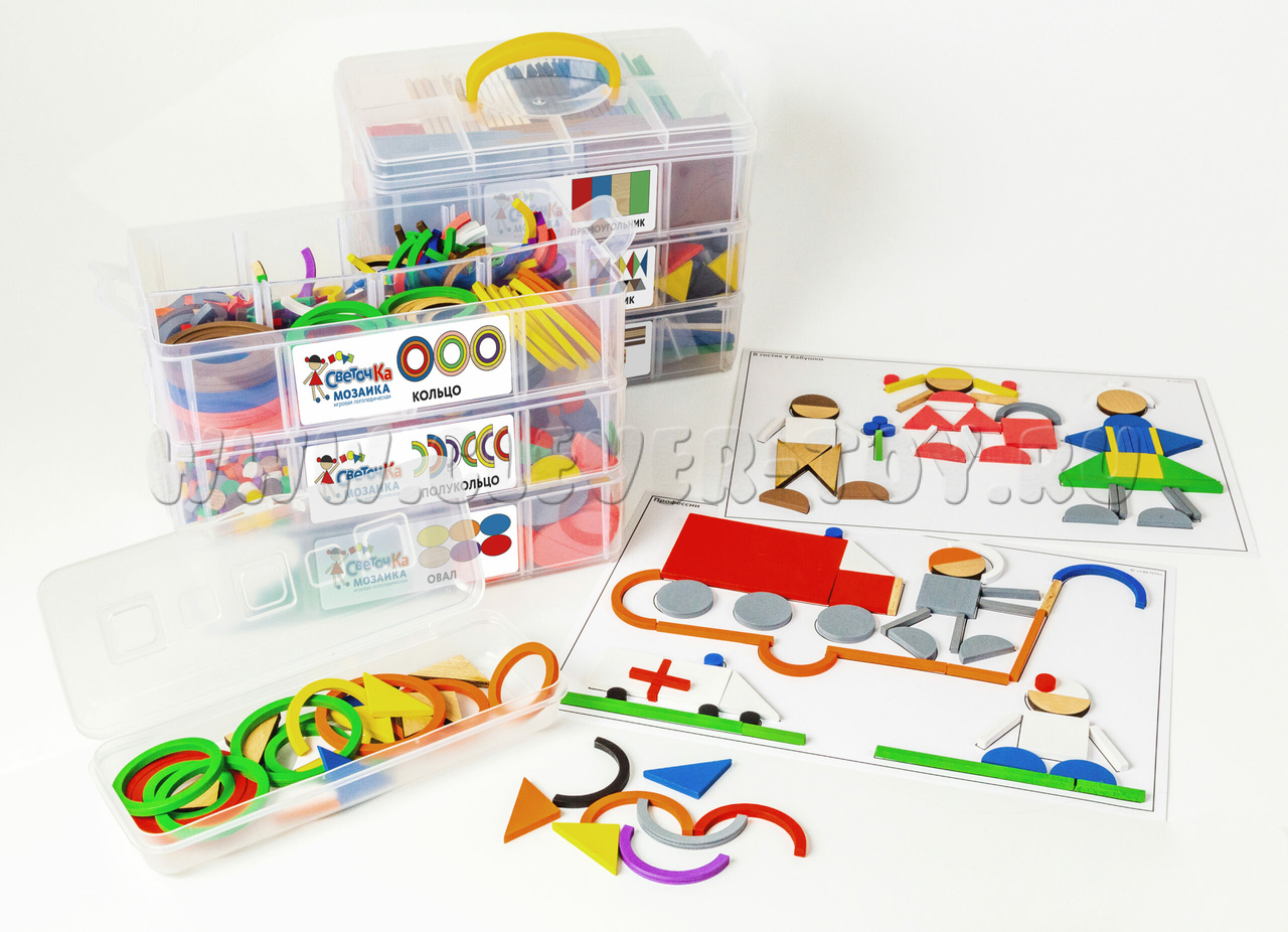 "СветочКа" мозаика игровая логопедическая - выполнена из разноцветных деталей в количестве, необходимом для выполнения мозаичных картинок по лексическим темам.