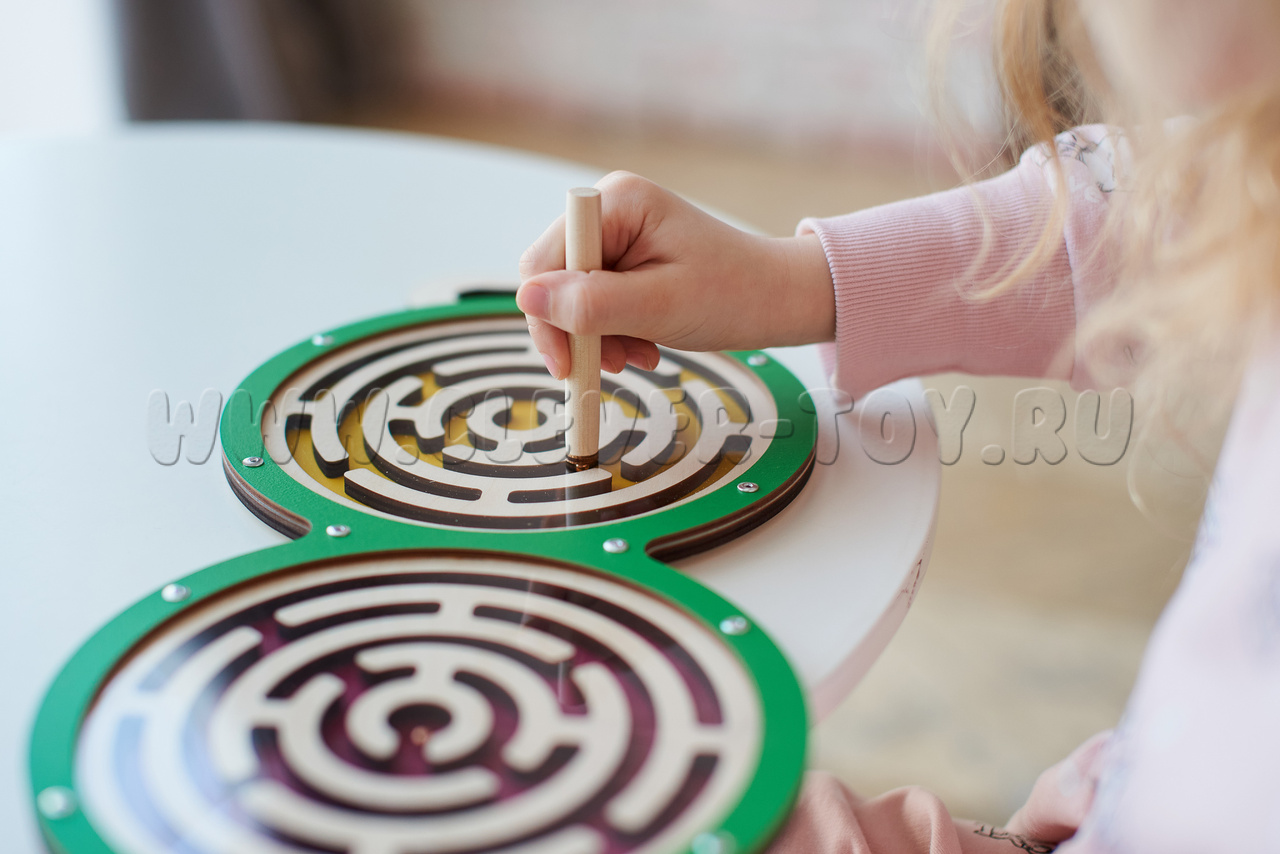4. После того, как ребенок освоит игру с одним шариком, предложите ему попробовать провести по маршруту два шарика на разных лабиринтах одновременно. Задача ребенка - провести шарики по дорожкам лабиринта так, чтобы они попали в центры лабиринтов.