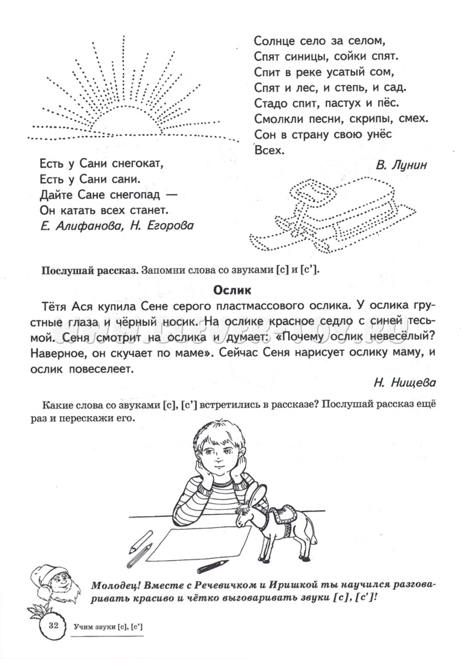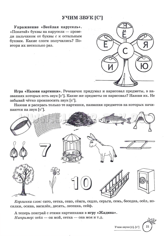 Предложенный комплект домашних игровых тетрадей учитывает принцип "от простого к сложному" и позволяет логопеду поэтапно автоматизировать звуки и дифференцировать звуки [с]-[с’].